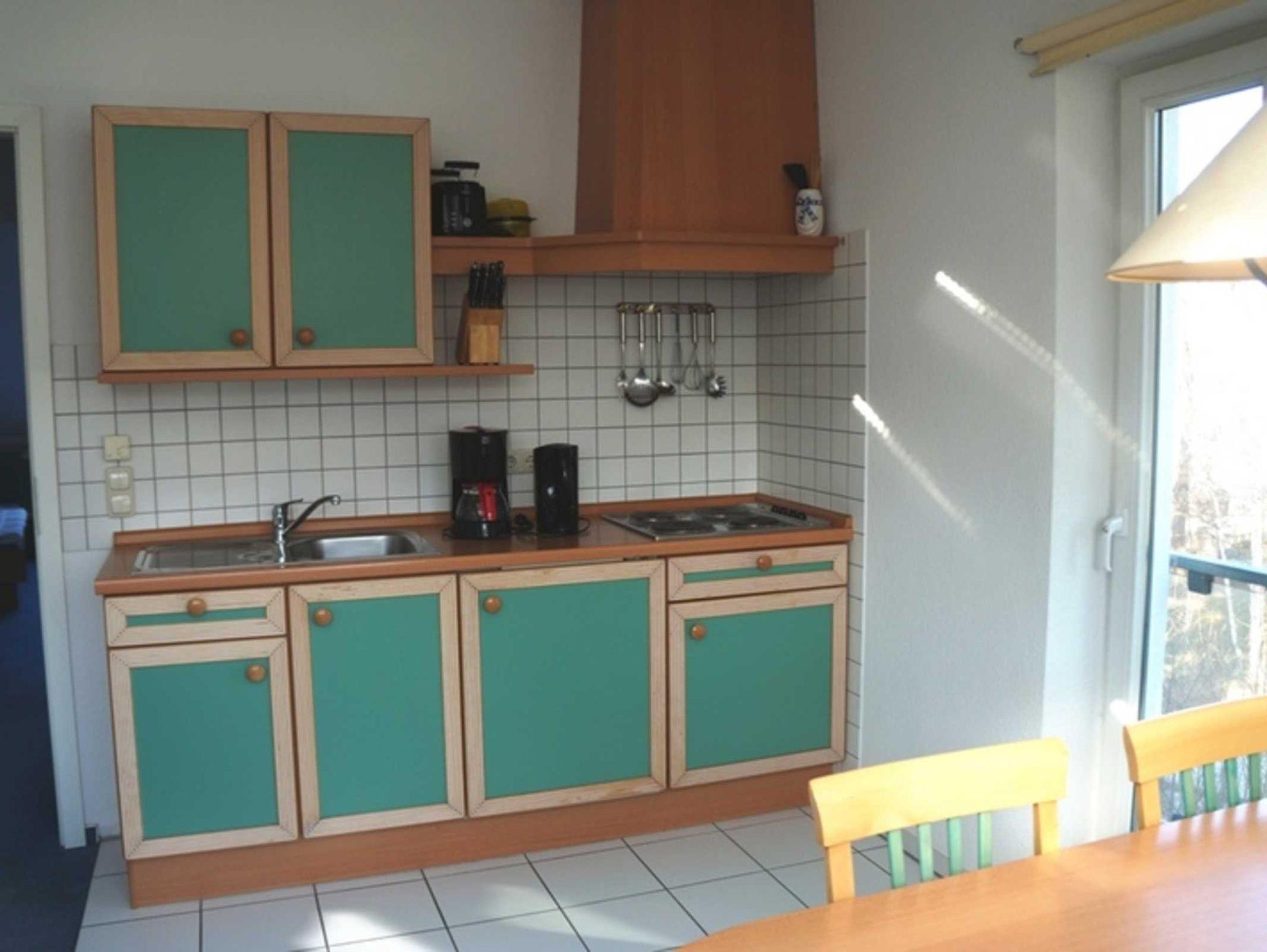 Eine komplett eingerichtete Küchenzeile (4-Plattenherd, Kühlschrank, Mikrowelle, Kaffeemaschine,Toaster, komplett Geschirr, etc.)als auch Dusche und WC gehören zur Wohnungsaufteilung.