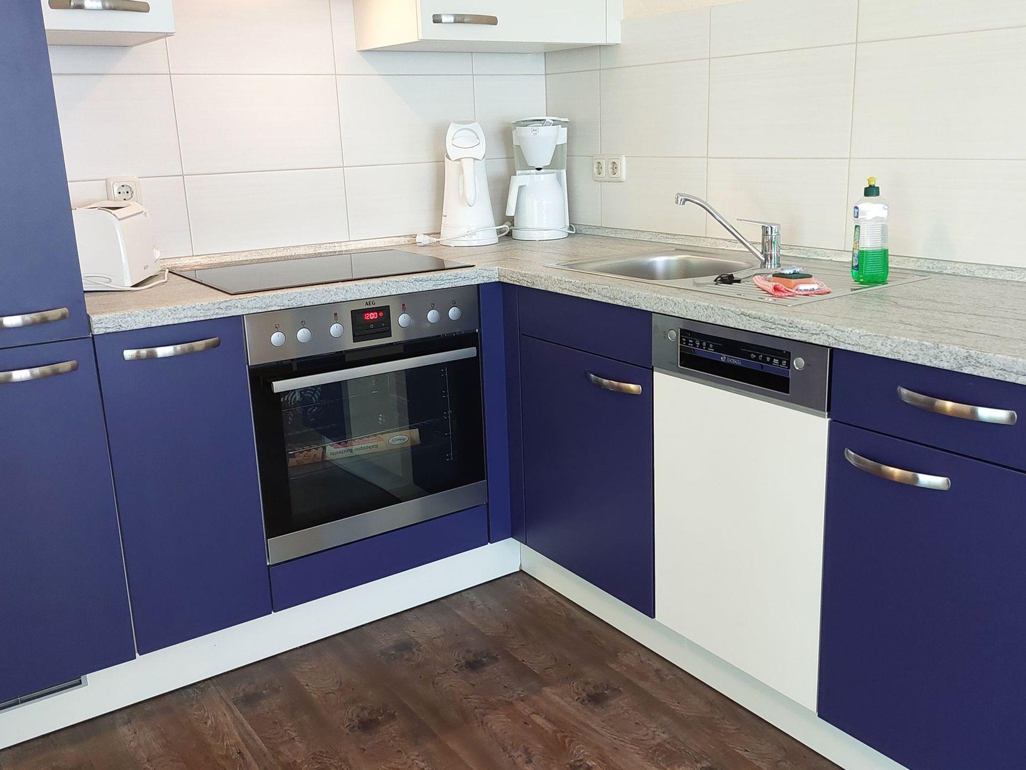 Diese freundliche Wohnung ist aufgeteilt in einen Wohnraum mit überdachter Terrasse und integrierter Küchenzeile, ein Schlafzimmer ebenso mit überdachter Terrasse und ein Duschbad mit Waschtisch und WC. Das Wohnzimmer begrüßt Sie mit einem Schlafsofa und Sessel sowie Flachbild-TV. Das geräumige Schlafzimmer verfügt über ein Doppelbett (1,80m x 2m) sowie einen Kleiderschrank. Die Küchenzeile ist mit Backofen, Geschirrspüler, Cerankochfeld, Kühlschrank mit kleinem Gefrierfach, Cerankochfeld, Mikrowelle, Kaffeemaschine, Wasserkocher und Toaster ausgestattet. Highlights: Kostenfreies WLAN sowie ein frei wählbarer PKW-Stellplatz direkt am Haus. Haustiere sind in dieser Wohnung herzlich willkommen.