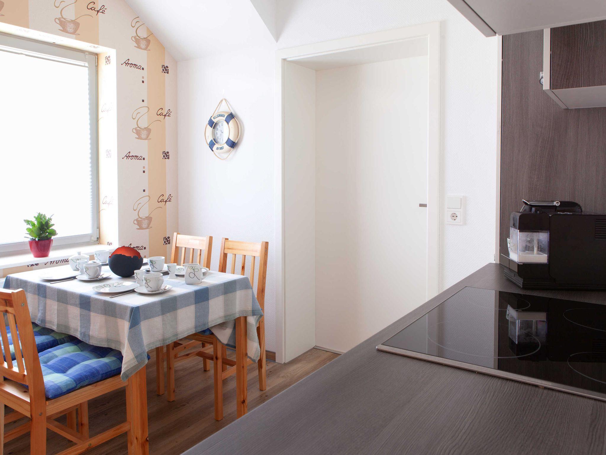 Die 70m² große Ferienwohnung mit seitlichem Meerblick befindet sich im Einfamilienhaus des Vermieters und wird über einen gemeinsamen Flur betreten.