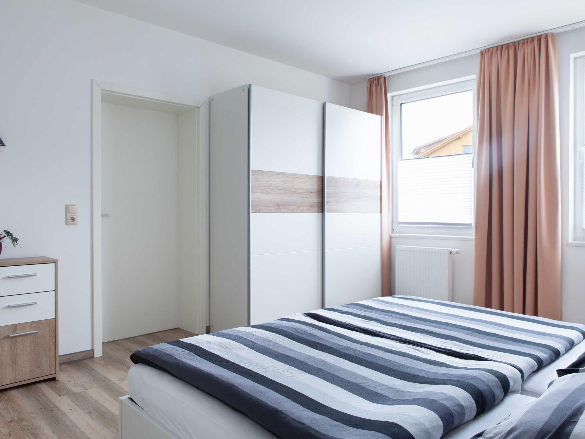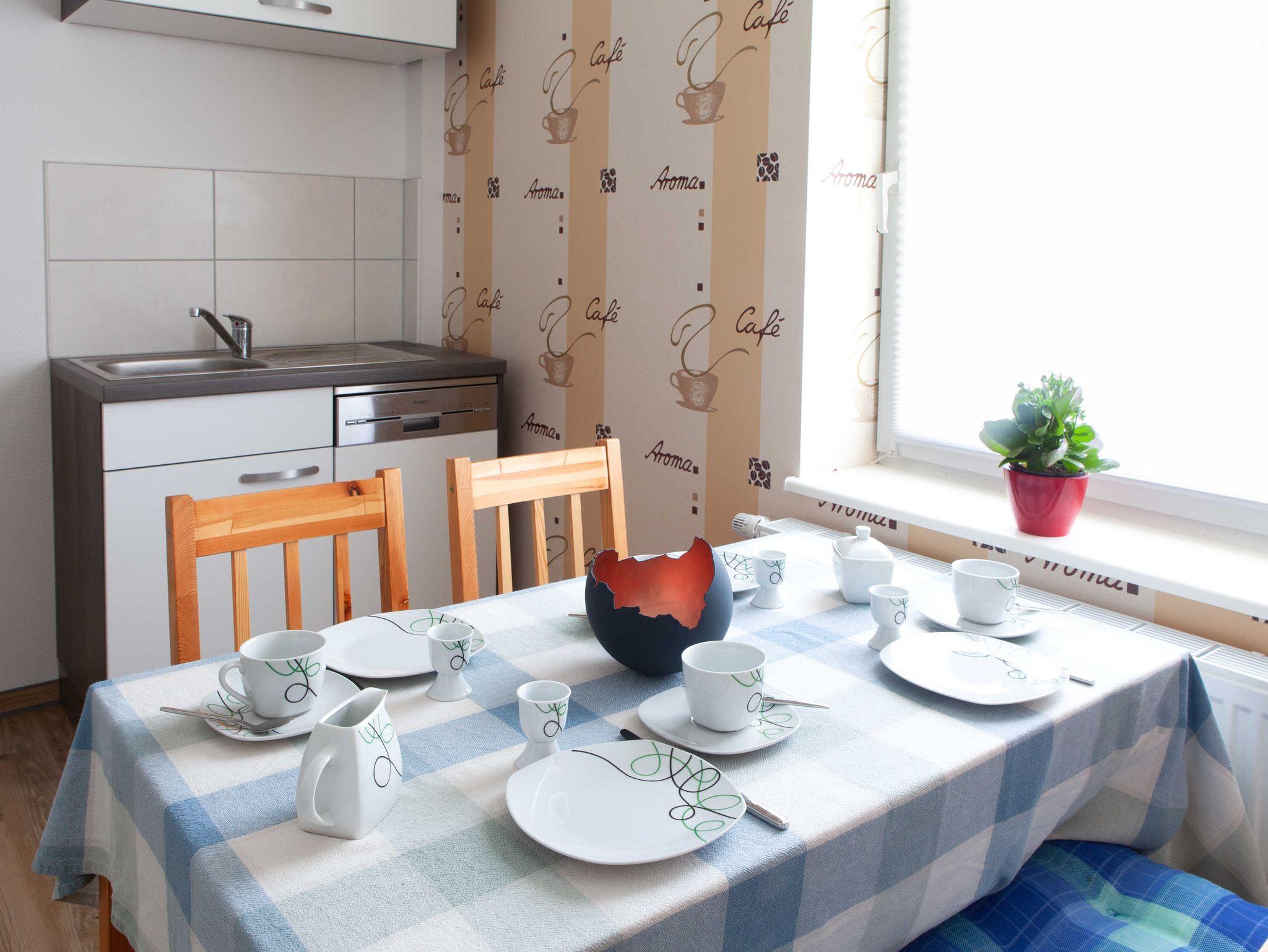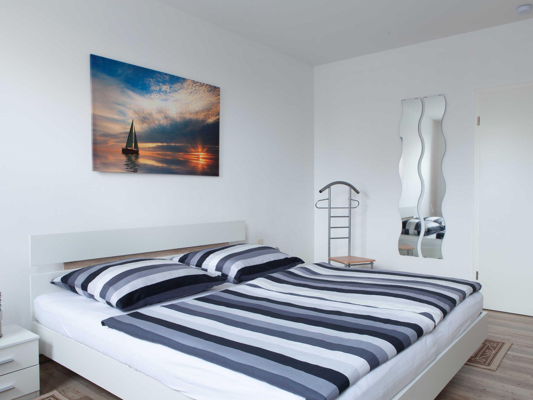 Die Ferienwohnung besteht aus einem Wohnzimmer mit Schlafcouch und TV, einem Schlafzimmer mit Doppelbett (180x200; getrennte Matratzen) und Kleiderschrank, einer separaten Küche mit Ceranherd, Backofen, Geschirrspüler, Kaffeemaschine, Essbereich mit Esstisch sowie ein Badezimmer mit Dusche und WC.