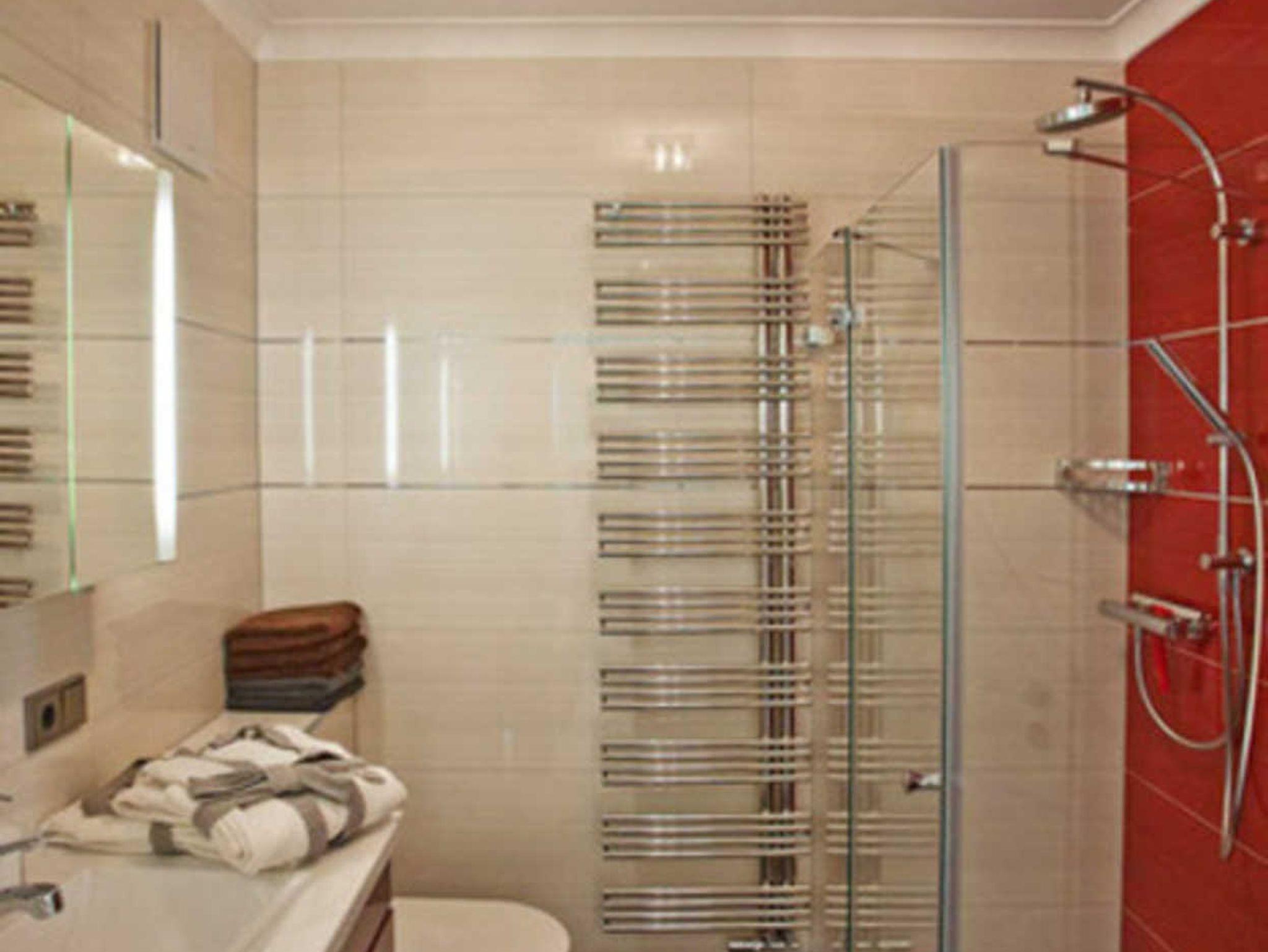 Ein Bad mit bodengleicher Dusche garantiert höchsten Badespaß ? noch dazu bei leiser Musik oder den aktuellen Nachrichten. Das Bad ist mit einem Waschtischschrank und einem Spiegelschrank mit Kosmetikspiegel und Haartrockner komfortabel ausgestattet.