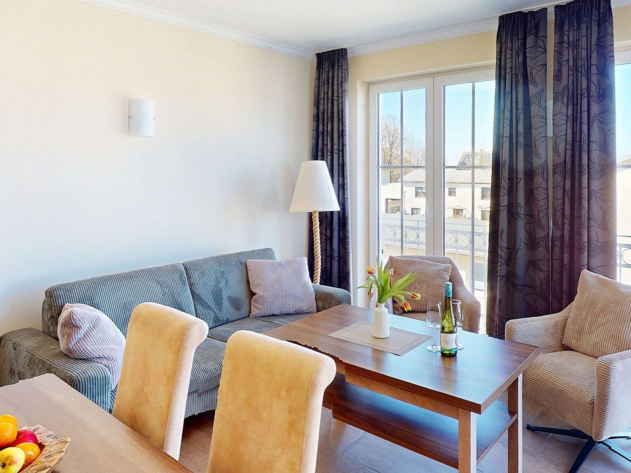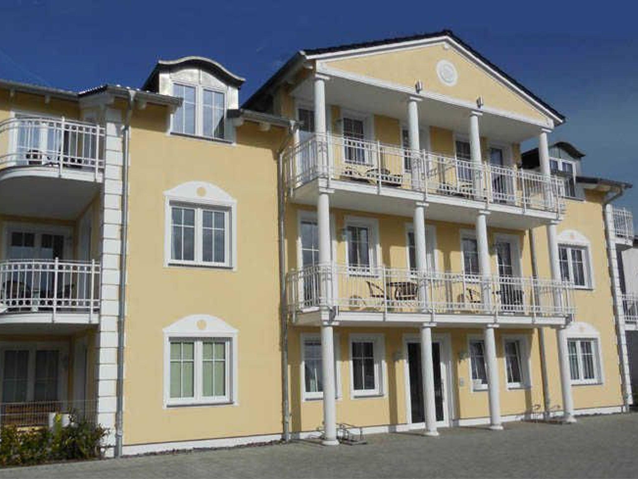 Apartmenthaus im Stil der für die Ostsee typischen Bäderarchitektur. Sie wohnen in einer 3-Zimmer-Ferienwohnung für bis zu 4 Personen mit jeweils 2 Schlafzimmern, einem Wohnraum mit Kamin, voll ausgestatteter Küchenzeile, Dusche/WC und eigener Sauna und drei Fernsehern. Zur Wohnung gehören zudem 2 Balkone.