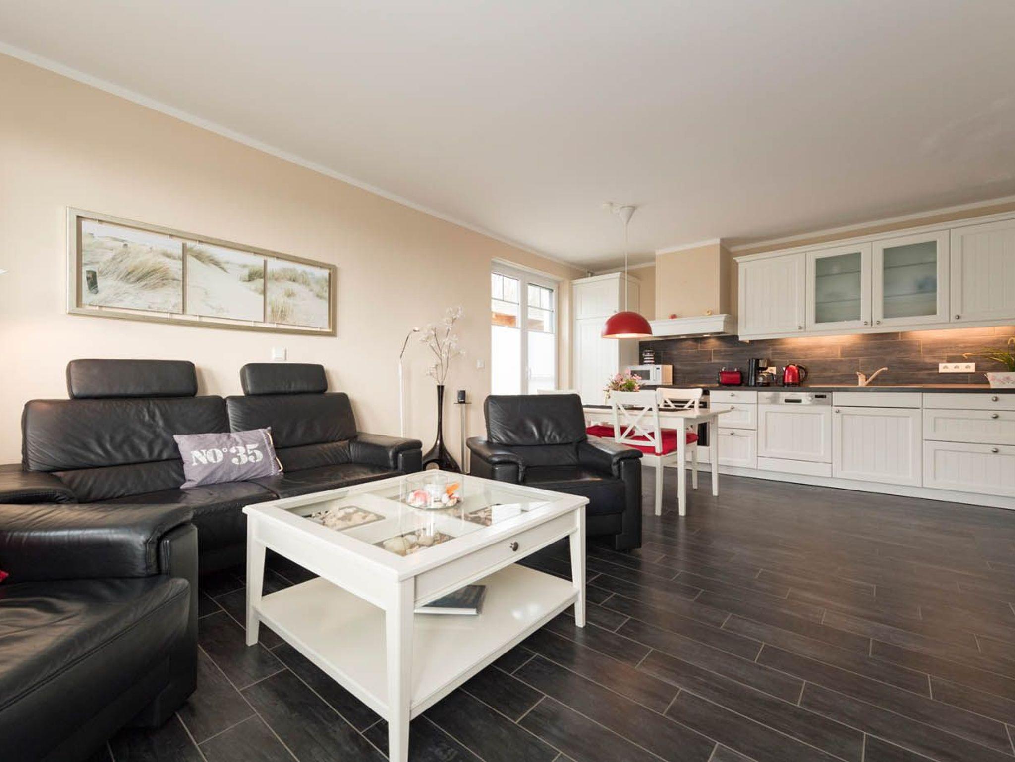 Sowohl für Familien, als auch zu zweit oder 2 befreundete Paare stehen Ihnen hier sehr schöne und hochwertig ausgestattete 3-Raum-Ferienwohnungen zur Verfügung. Alle Ferienwohnungen sind modern eingerichtet und verfügen u. a. über 2 Schlafzimmer und Meerblick. Die Wohnung Nr. 2 bietet darüber hinaus auch einen Kamin.