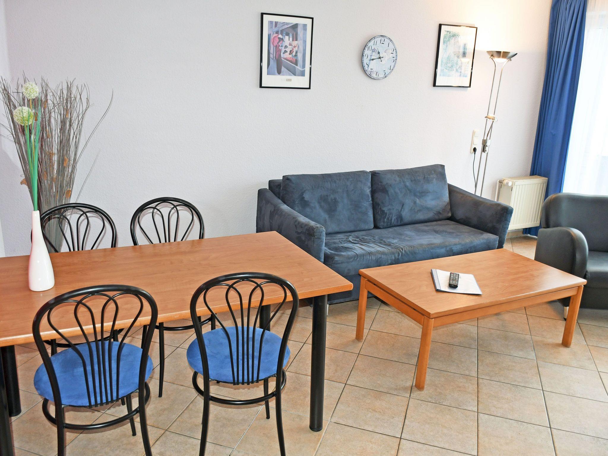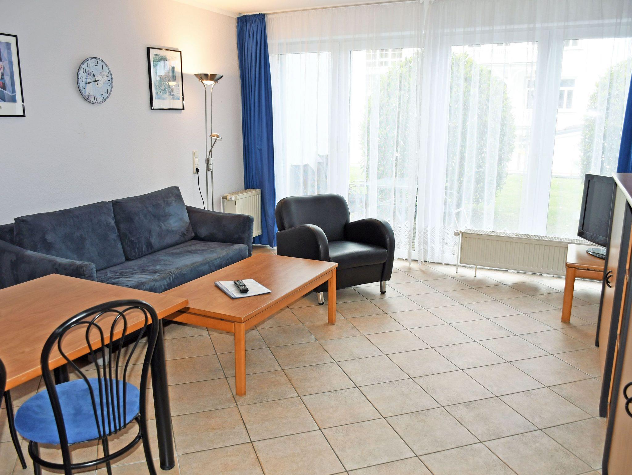 Modernes 2-Raum-Appartement mit Terrasse im Ostseebad Göhren, nahe Strand und Kurpark, ideal für Familien und Geschäftsreisende.