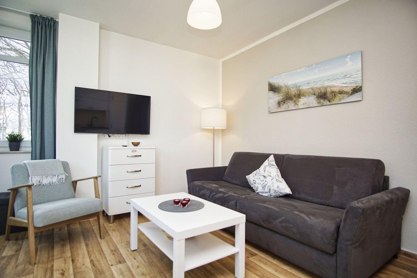 Strandnahe, ruhige Ferienwohnung in Göhren mit Meerblick und Balkon für erholsamen Urlaub auf Rügen.