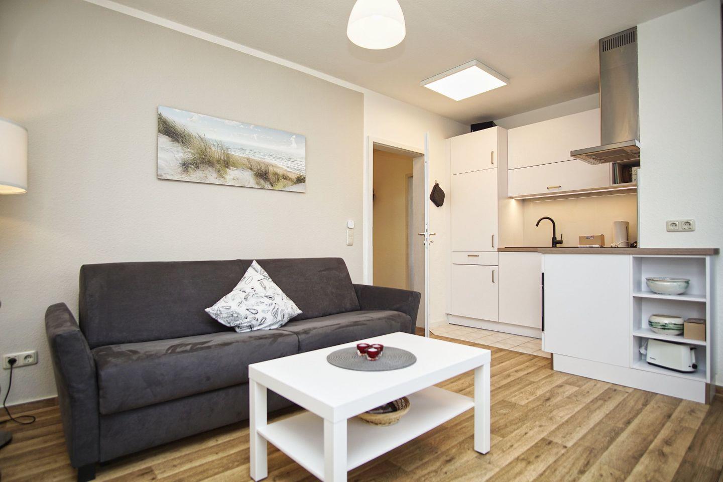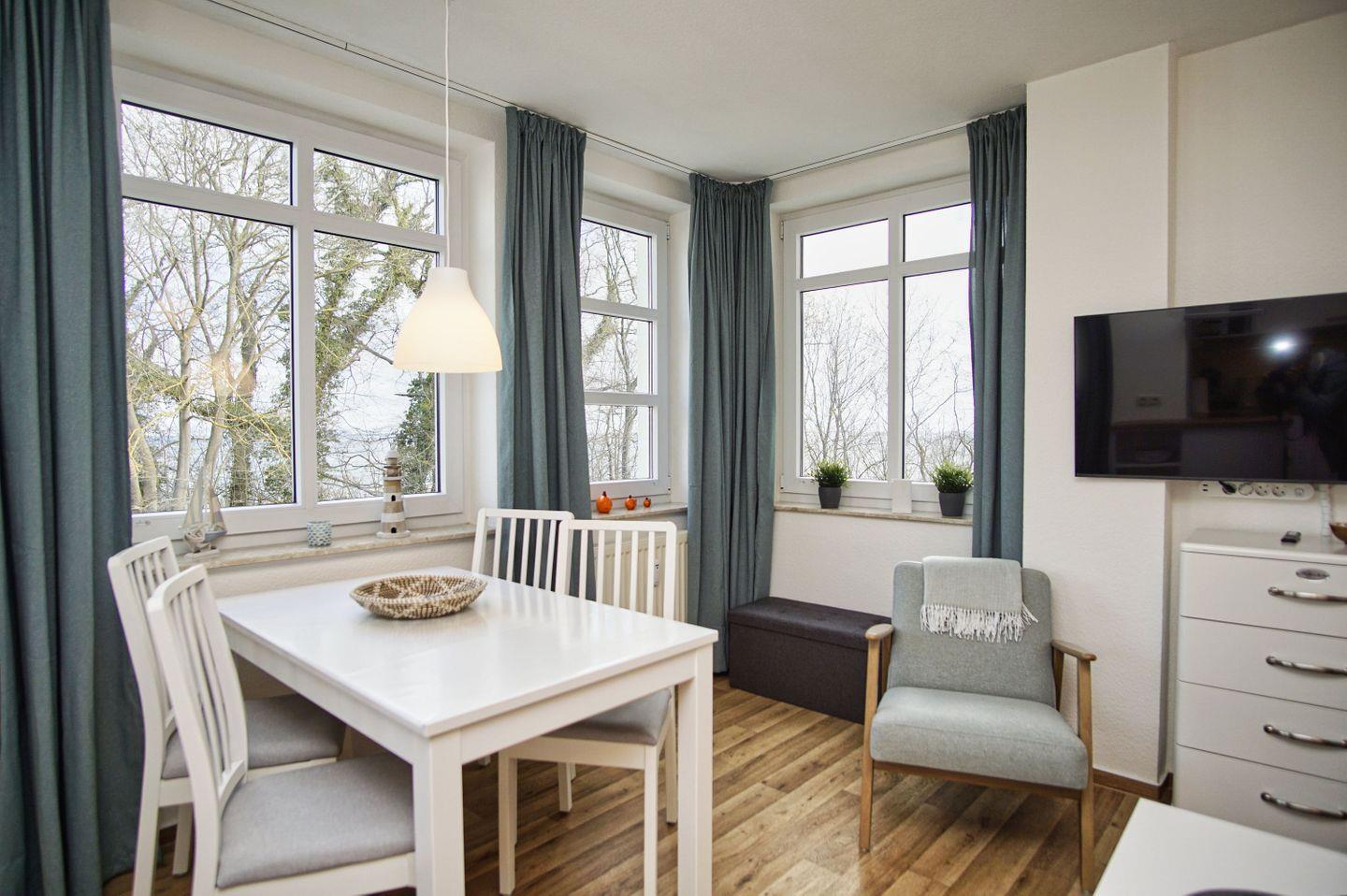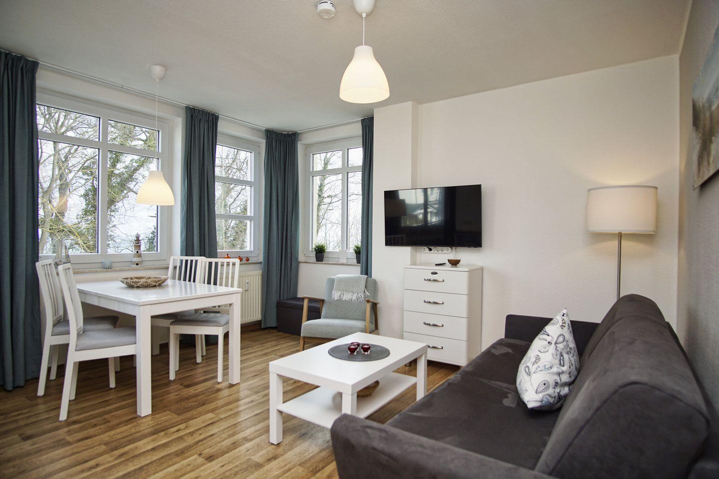 In der Ferienwohnung können bis 4 Personen unterkommen und den Urlaub auf der Insel genießen. Eine komfortable Einrichtung, bei der es Ihnen an nichts fehlen wird, erwartet Sie. Vom großen, ausladenden Sonnenbalkon der Wohnungen Typ C können Sie die Ostsee zwischen den Blättern der urigen Buchen und Eichen des umgebenden Naturschutzgebietes durchblitzen sehen.