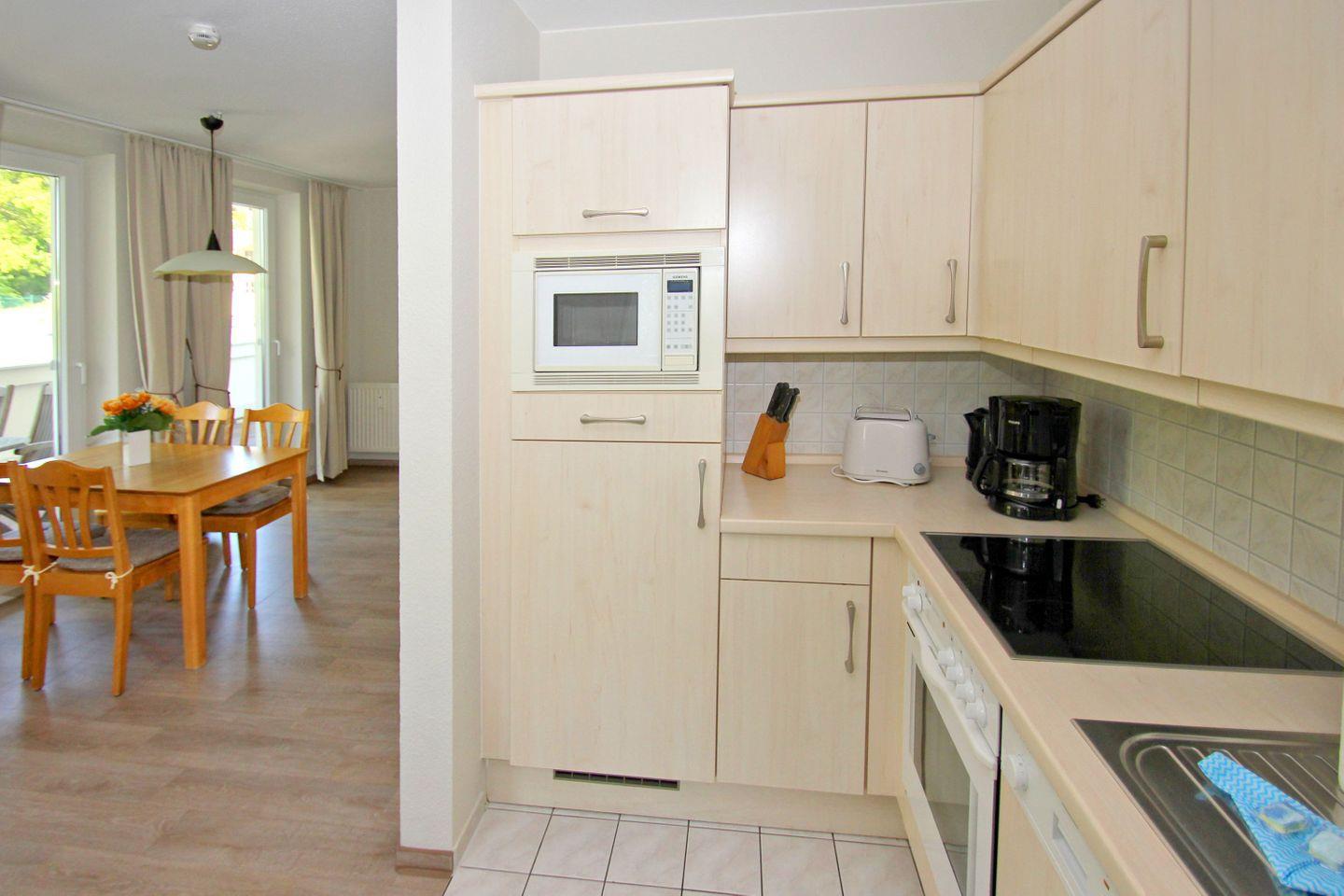 In der Ferienwohnung können bis 4 Personen unterkommen und den Urlaub auf der Insel genießen. Eine komfortable Einrichtung, bei der es Ihnen an nichts fehlen wird, erwartet Sie. Vom großen, ausladenden Sonnenbalkon der Wohnungen Typ C können Sie die Ostsee zwischen den Blättern der urigen Buchen und Eichen des umgebenden Naturschutzgebietes durchblitzen sehen.