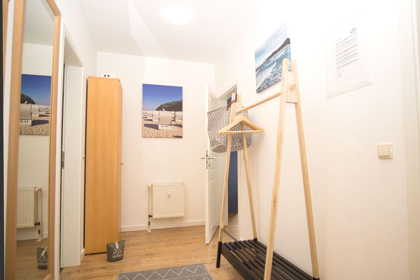 Von innen erstrahlt die Wohnung in hellen, freundlichen Farben mit komfortabler Einrichtung zum Wohlfühlen. Ein Parkplatz steht vor dem Haus zu Ihrer Verfügung. Das Naturschutzgebiet des Nordperds ist nicht weit entfernt, direkt hinter dem Haus betritt man dieses und kann die grüne Umgebung auf sich wirken lassen. Wer lieber einen Abstecher auf ein Gläschen Wein oder einen fruchtigen Cocktail machen möchte, ist mit wenigen Schritten (ca. 50 – 100m) auf der Flaniermeile des Ostseebad Göhren. Hier befinden sich zahlreiche Restaurants und Cafés/Bars sowie Einkaufsmöglichkeiten, die Ihnen den Urlaub versüßen. Besuchen Sie die niedliche, bei Einheimischen allseits beliebte „Vinothek“ und kosten Sie exquisiten Wein oder schlürfen Sie im „Globetrotter“ einen Cocktail Ihrer Wahl.