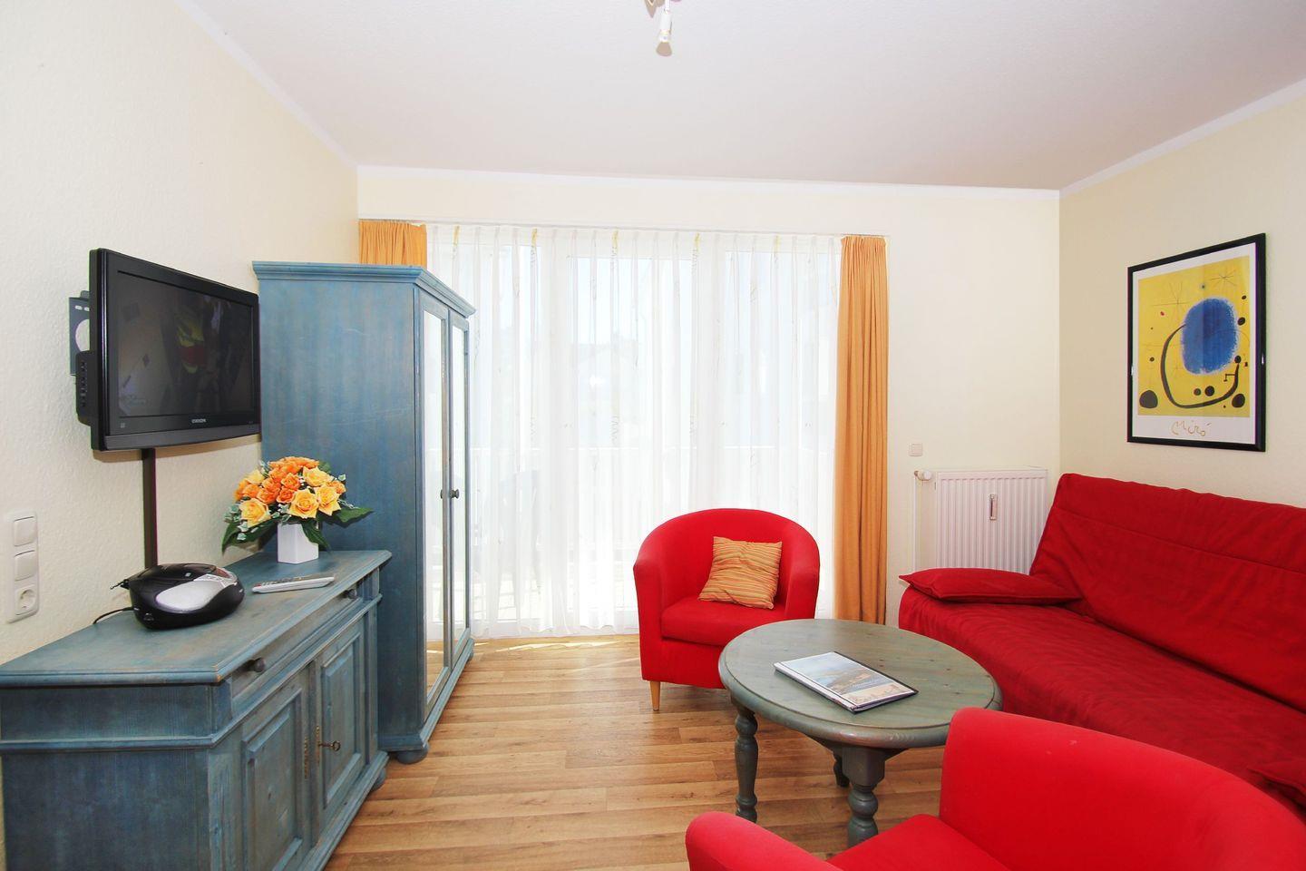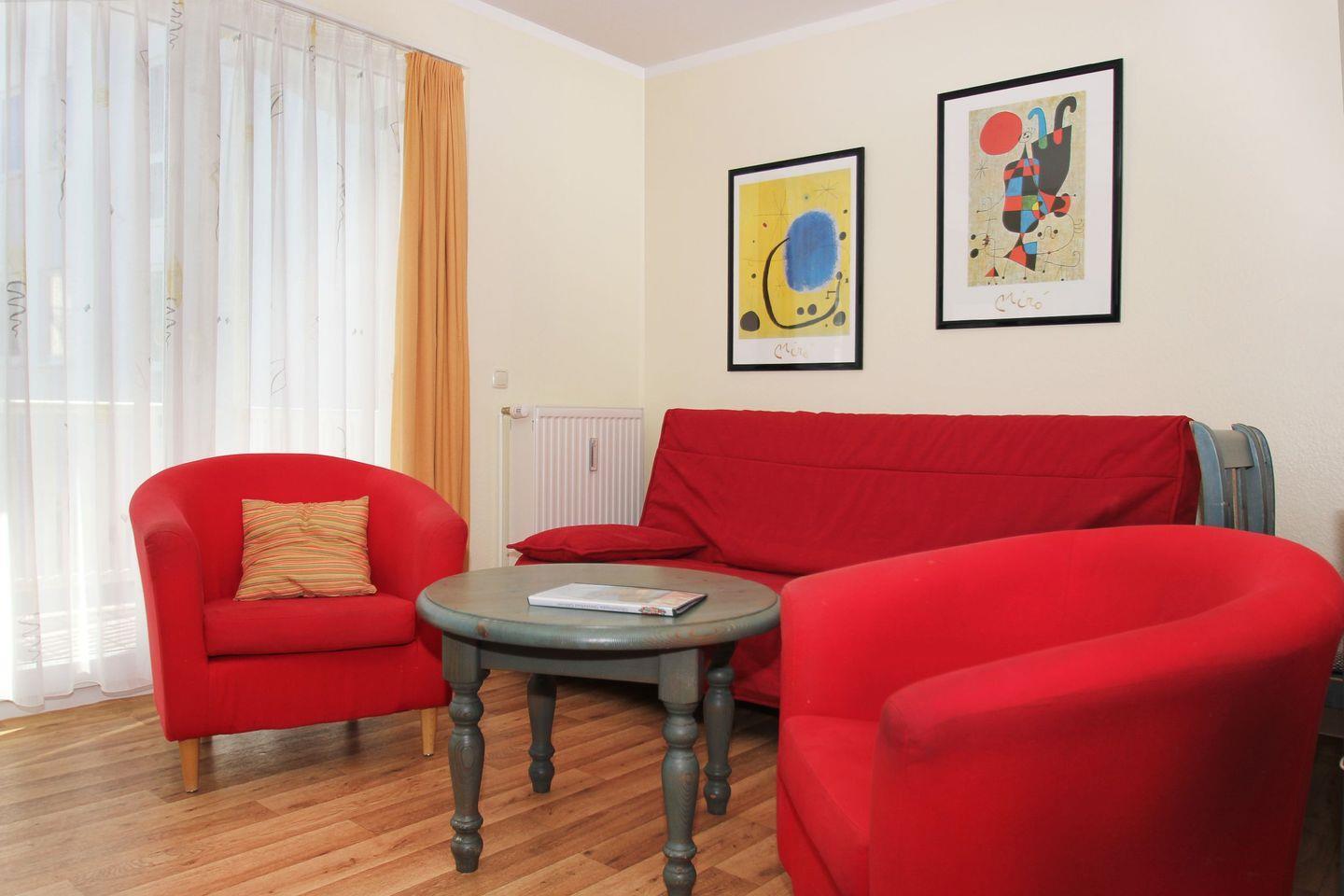 Gemütliche Ferienwohnung mit Balkon in Göhren, inklusive kostenlosem Zugang zum AHOI Erlebnisbad und Sauna.