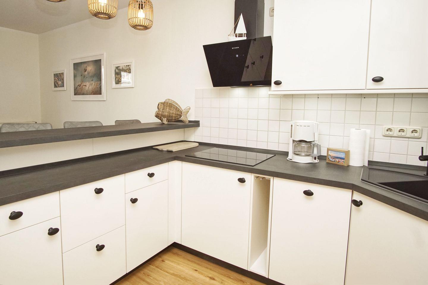 KÜCHE // offene Küche, Ceranfeld, Spülmaschine, Kühlschrank mit Gefrierfach, Backofen (Kombigerät), Toaster, Wasserkocher, Kaffeemaschine, reichlich Besteck, Geschirr und Küchenutensilien sowie Waschmaschine ++