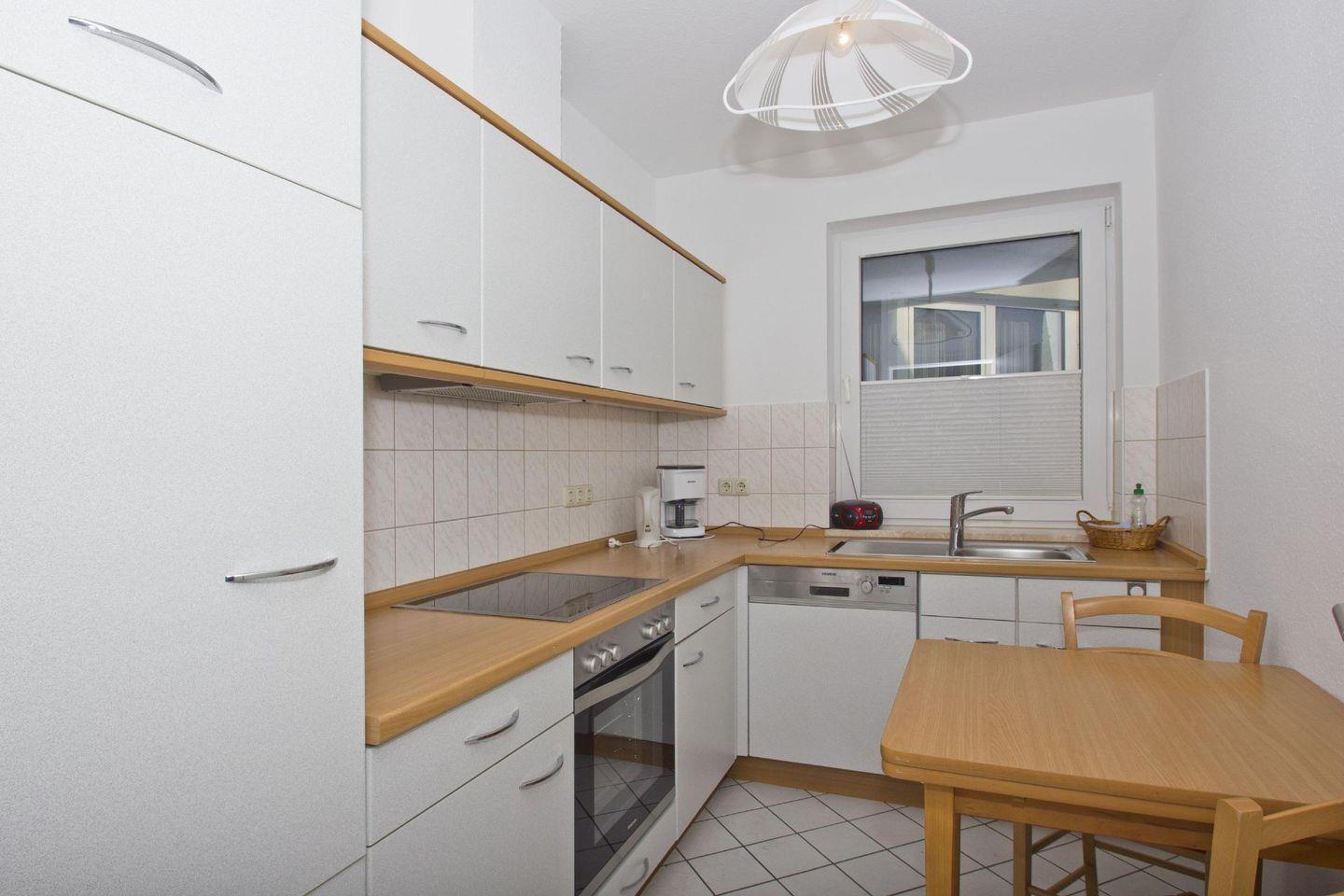 KÜCHE // separate Küche, 4-Platten Herd, Spülmaschine, Kühlschrank mit Gefrierfach, Backofen, Toaster, Wasserkocher, Kaffeemaschine, reichlich Besteck, Geschirr und Küchenutensilien ++
