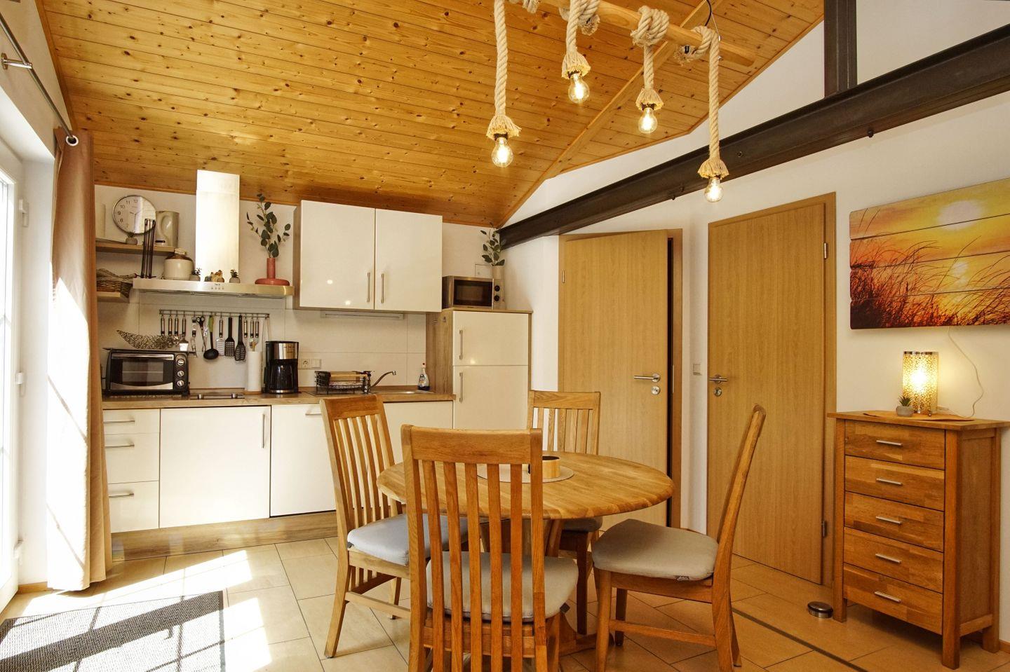 KÜCHE // offene Küche, 2-Felder Ceranherd, Kühlschrank mit Gefrierfach, Mikrowelle, Geschirrspülmaschine, Toaster, Wasserkocher, Kaffeemaschine, reichlich Besteck, Geschirr und Küchenutensilien ++