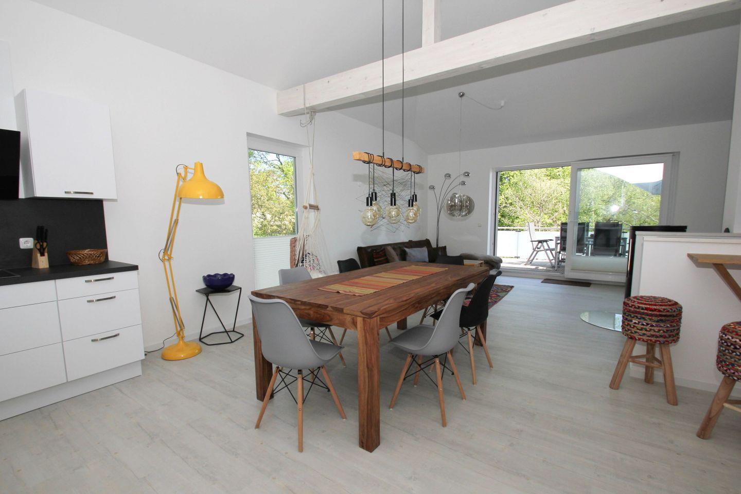 KÜCHE // offene Wohnküche mit Essbereich, 4-Platten Ceranherd, Spülmaschine, Kühlschrank mit Gefrierfach, Backofen, Mikrowelle, Toaster, Wasserkocher, Kaffeemaschine, reichlich Besteck, Geschirr und Küchenutensilien ++