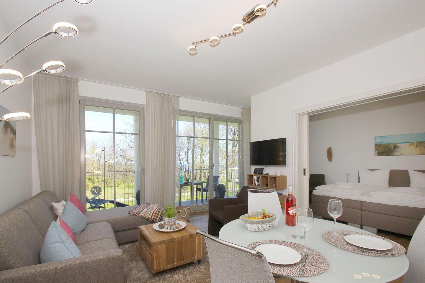 Moderne Ferienwohnung mit Sauna, Balkon und seitlichem Meerblick in Göhren.