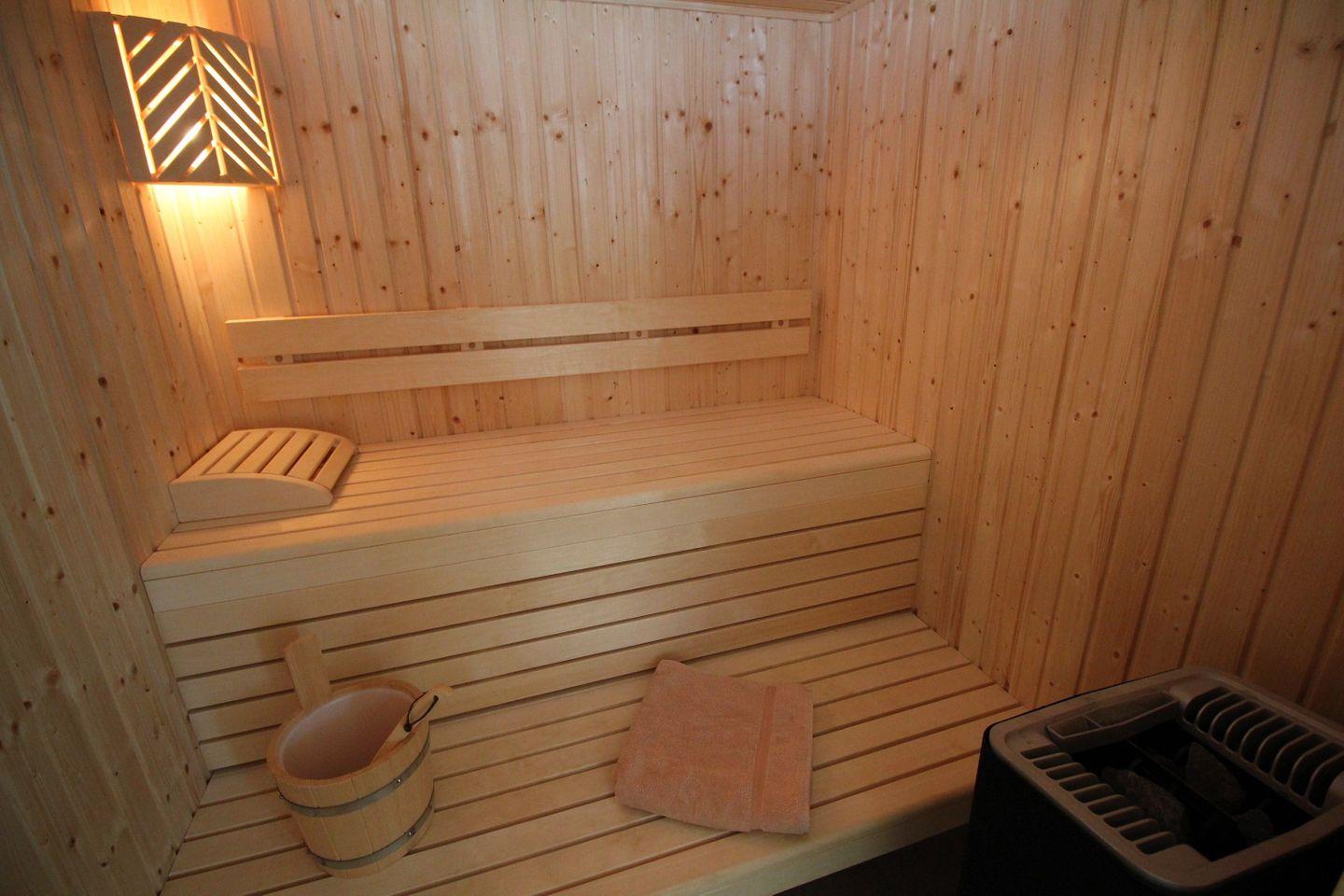 Im Ferienhaus Sealodge Rügen befindet sich eine eigene Sauna.