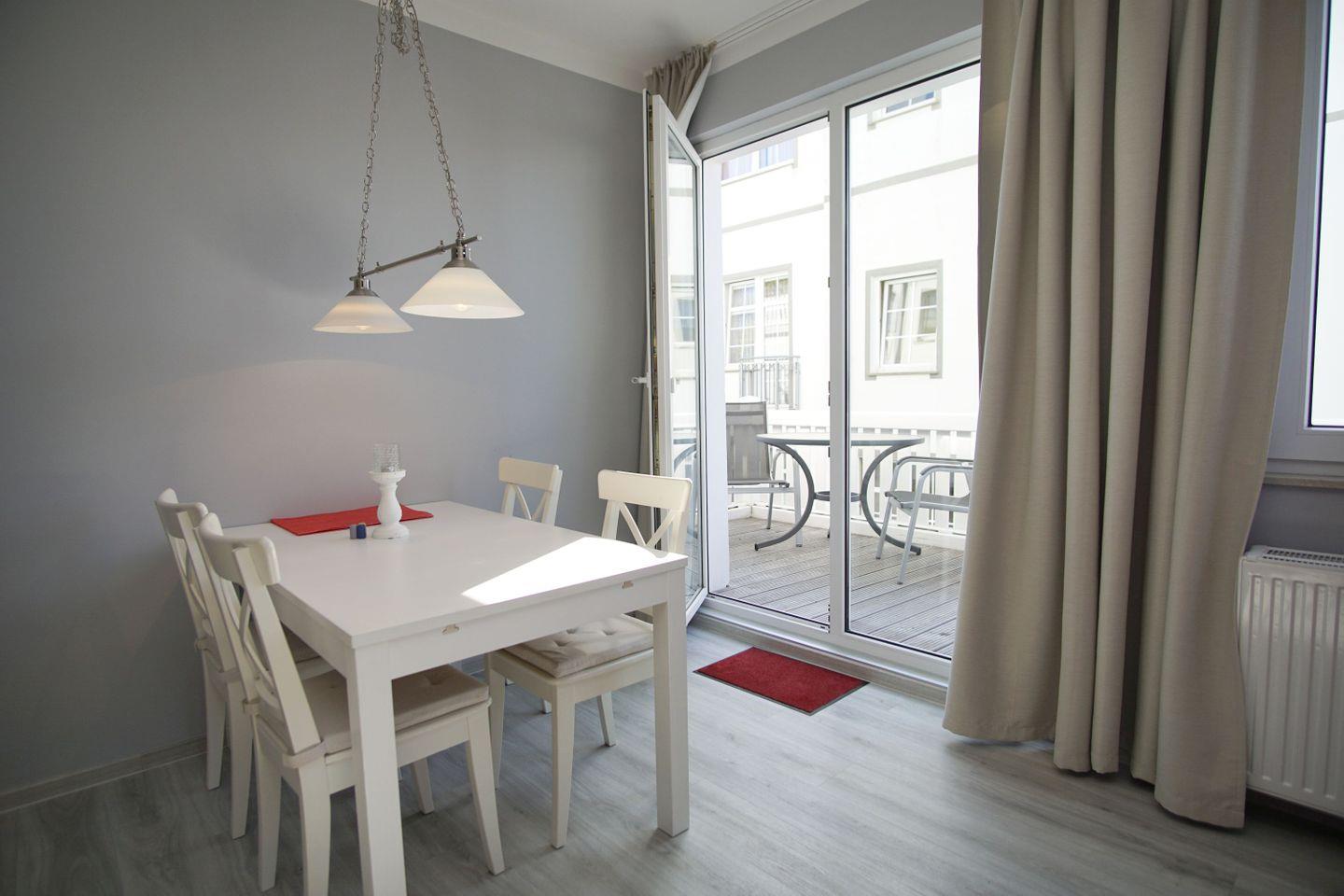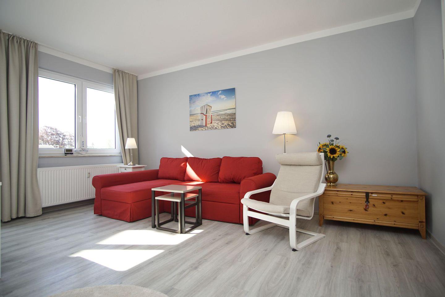 Komfortable 2-Raum-Ferienwohnung in ruhiger Lage nahe Strand und Zentrum in Göhren mit Balkon und kostenfreiem Poolzugang.