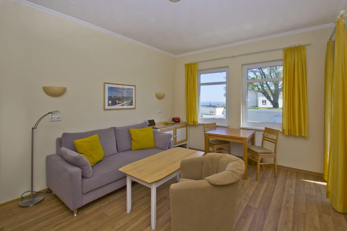 Die Ferienwohnungen in den Meeresblick Residenzen sind nicht nur großzügig geschnitten und komfortabel eingerichtet, sie verfügen darüber hinaus zumeist über eine traumhafte Aussicht über Südost Rügen und die weite Ostsee.