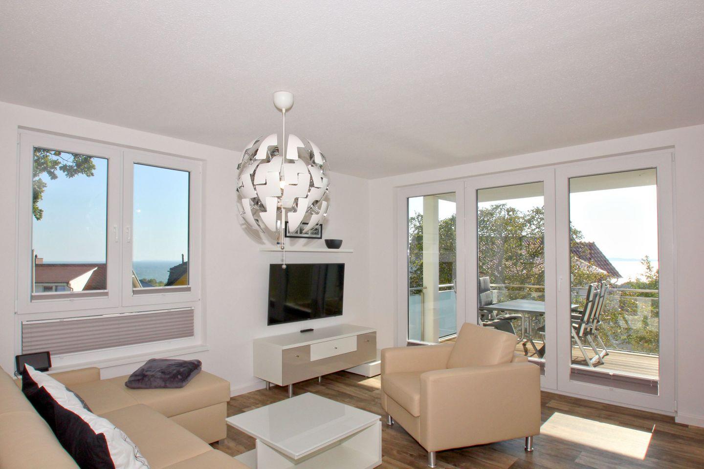 Die 1-, 2- und 3- Raum Ferienwohnungen in den Meeresblick Residenzen sind nicht nur großzügig geschnitten und komfortabel eingerichtet, die meisten verfügen darüber hinaus über eine traumhafte Aussicht über Südost Rügen und die weite Ostsee. Kostenloses WLan ist in dieser Residenzanlage selbstverständlich. Pro Ferienwohnung steht Ihnen ein PKW-Stellplatz (kostenfrei) zur Verfügung.