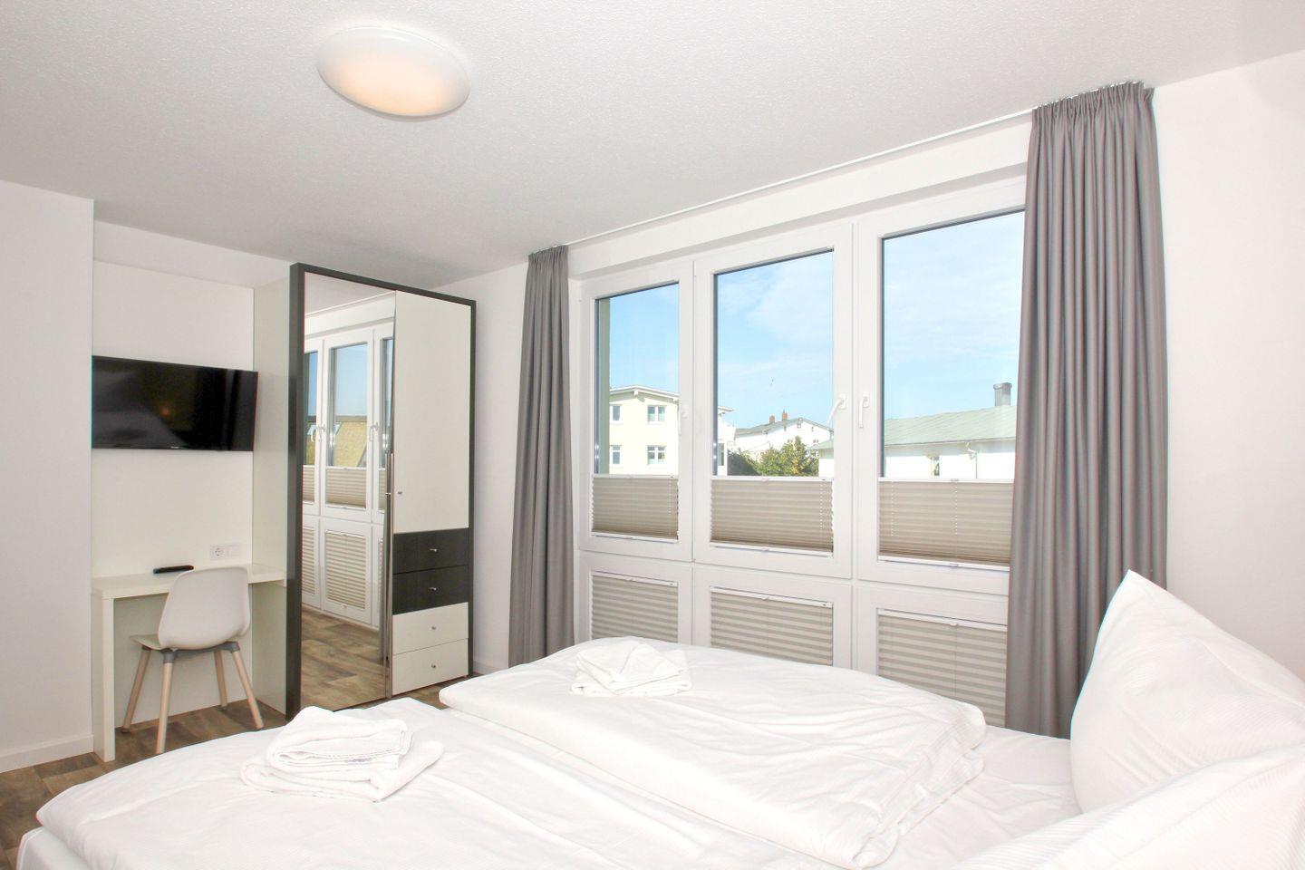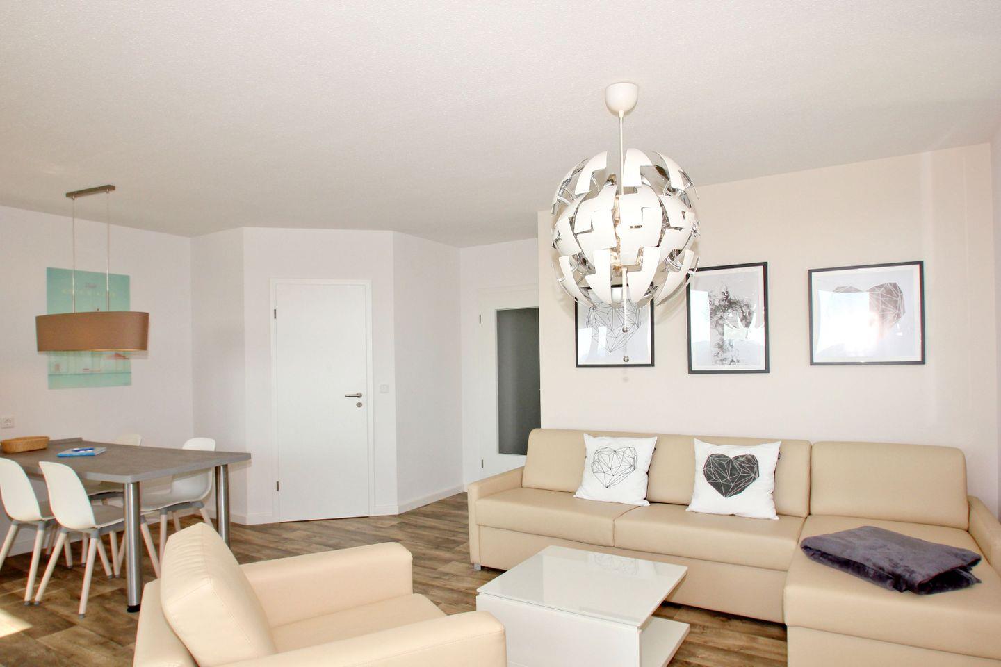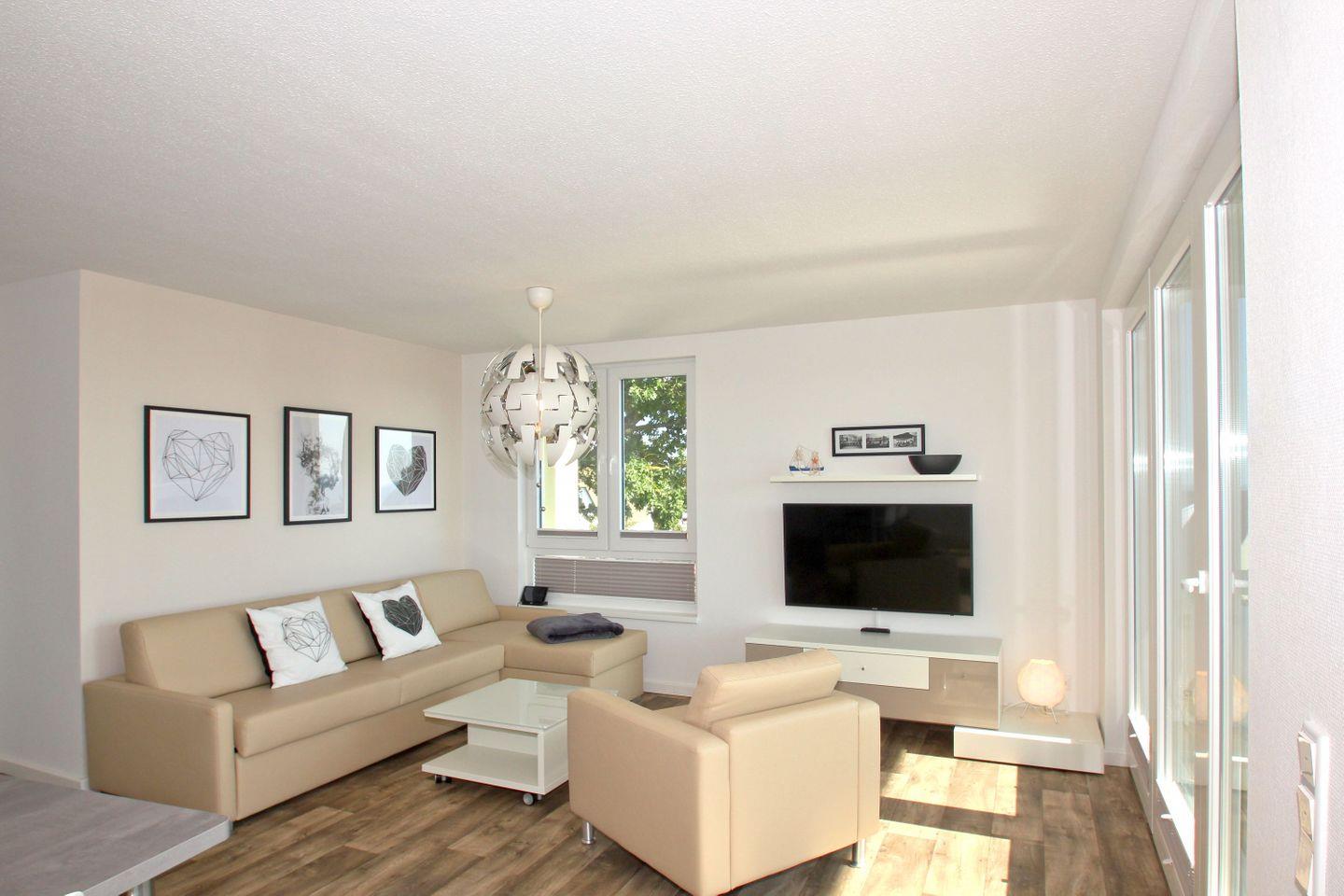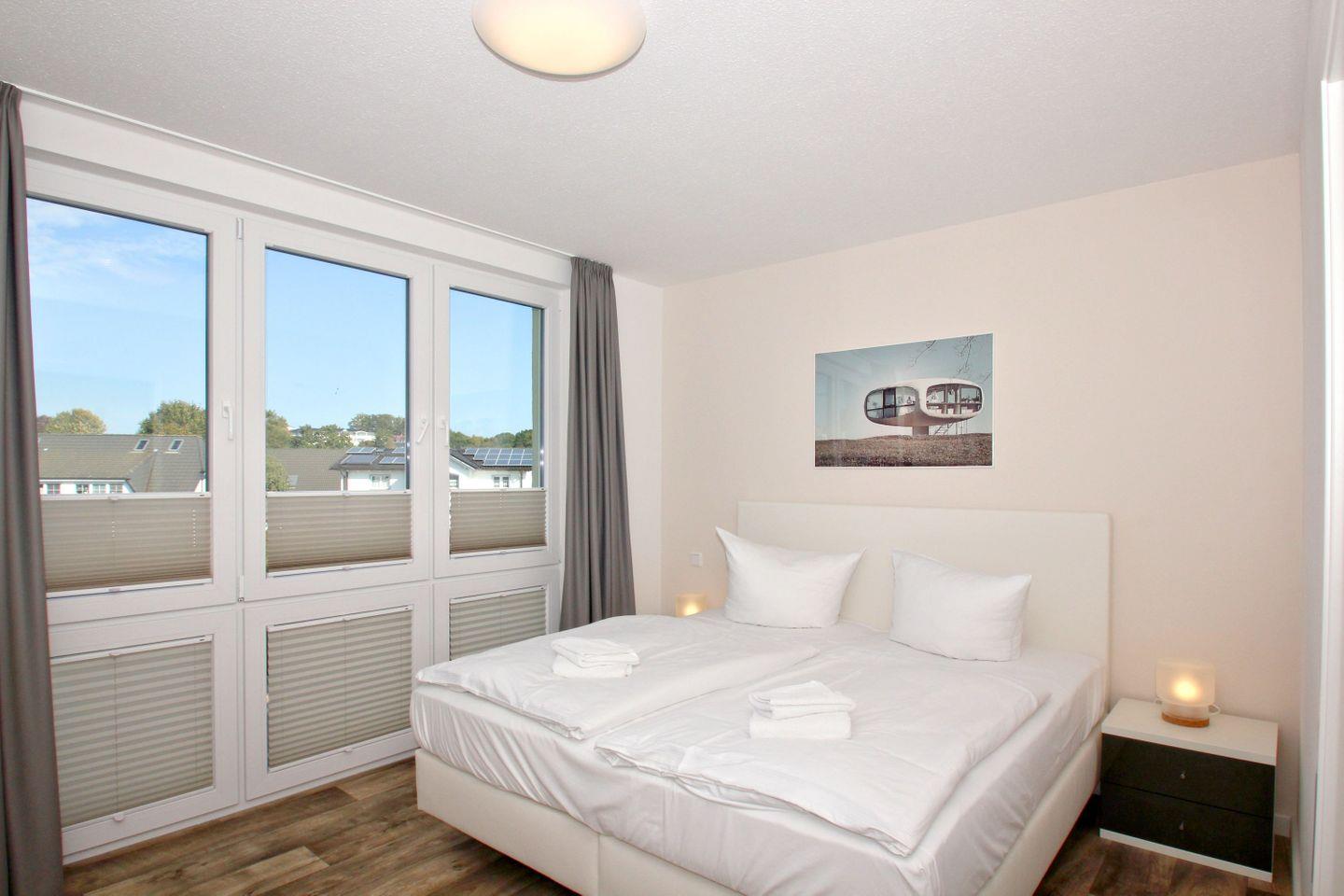 Moderne Ferienwohnung in Göhren mit Meerblick, Balkon, kostenfreiem WLAN, Schwimmbad- und Saunanutzung sowie kostenlosem Parkplatz.