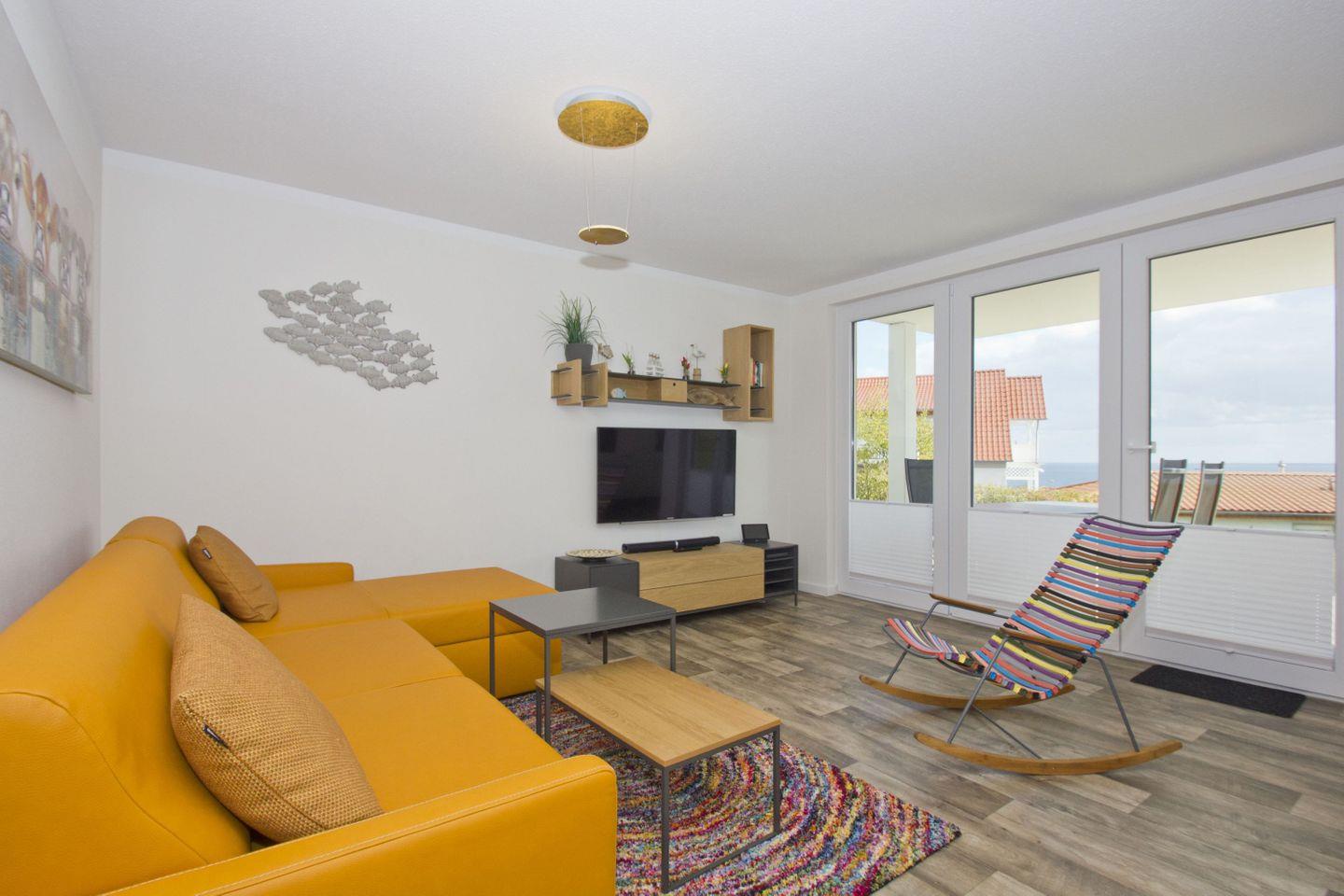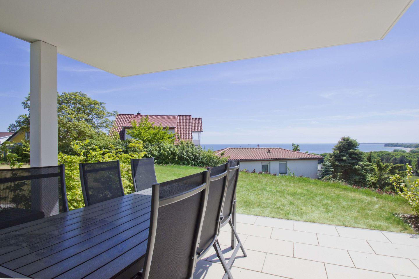 Moderne Ferienwohnung mit Meerblick, Terrasse und kostenfreiem Zugang zu Schwimmbad und Sauna in Göhren.