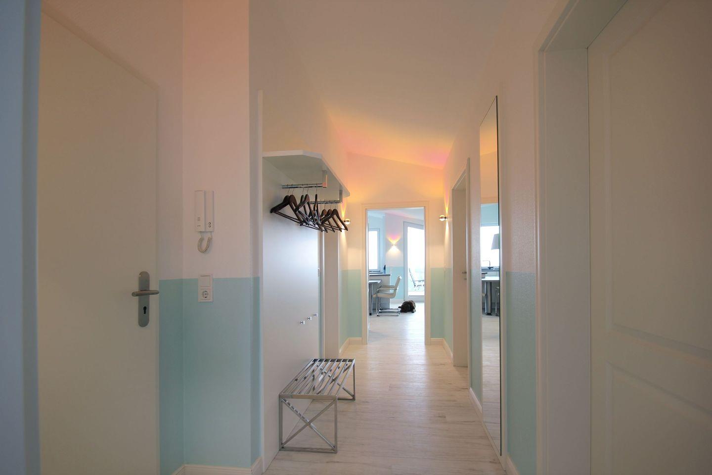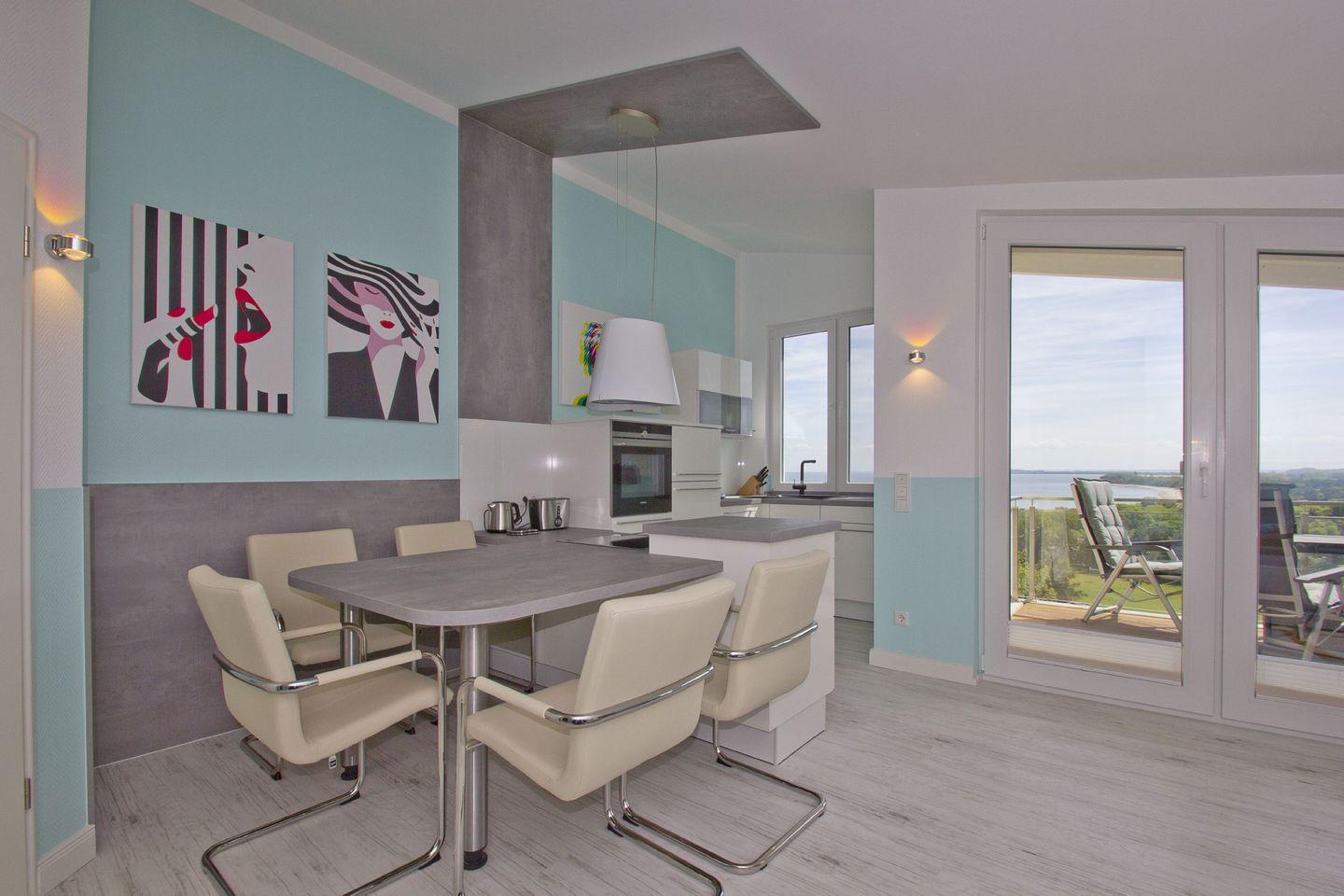 Moderne Ferienwohnung mit Meerblick, Balkon, kostenfreiem WLAN und Zugang zu Hallenbad und Sauna in Göhren.