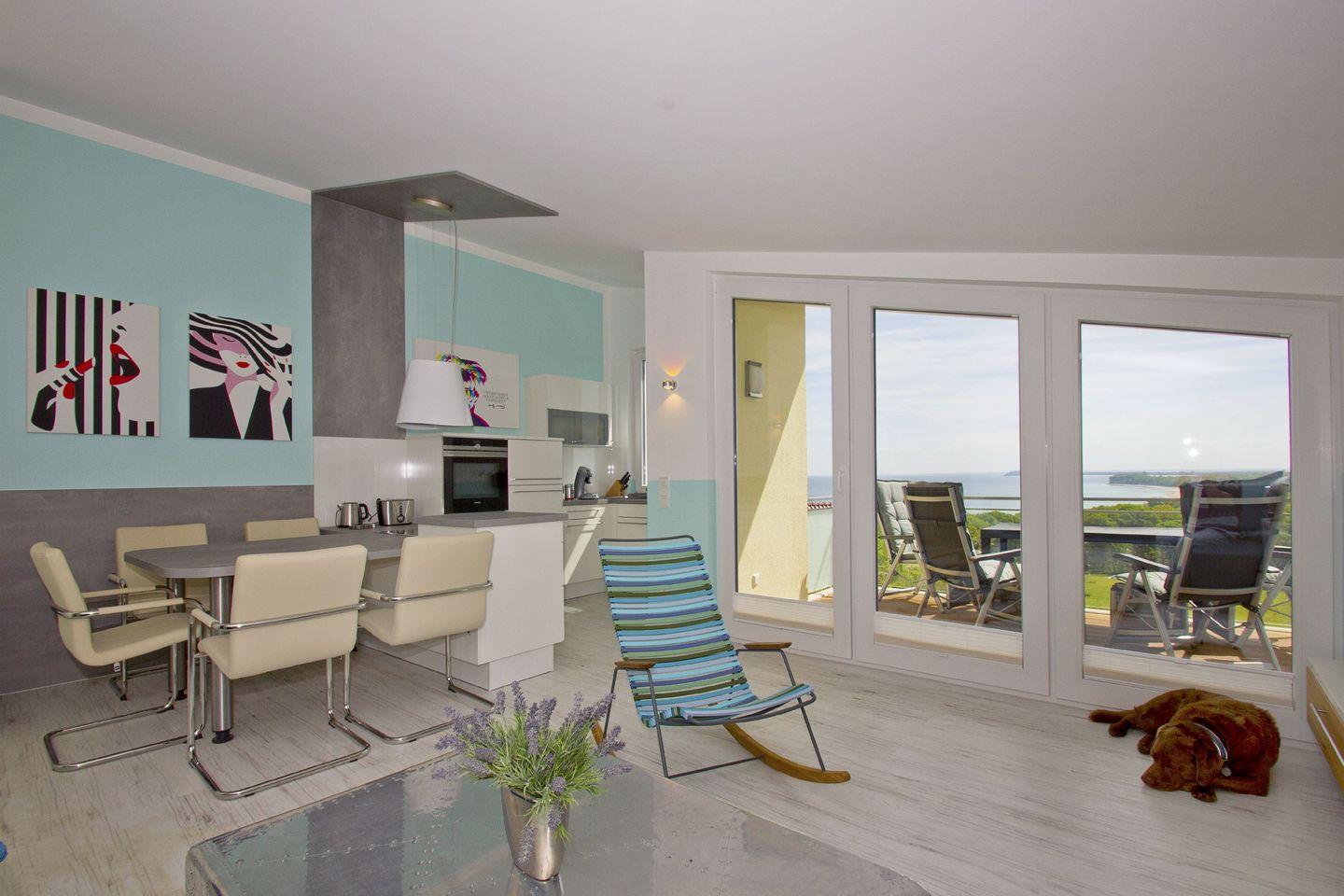 Die 1-, 2- und 3- Raum Ferienwohnungen in den Meeresblick Residenzen sind nicht nur großzügig geschnitten und komfortabel eingerichtet, die meisten verfügen darüber hinaus über eine traumhafte Aussicht über Südost Rügen und die weite Ostsee. Kostenloses WLan ist in dieser Residenzanlage selbstverständlich. Pro Ferienwohnung steht Ihnen ein PKW-Stellplatz (kostenfrei) zur Verfügung.