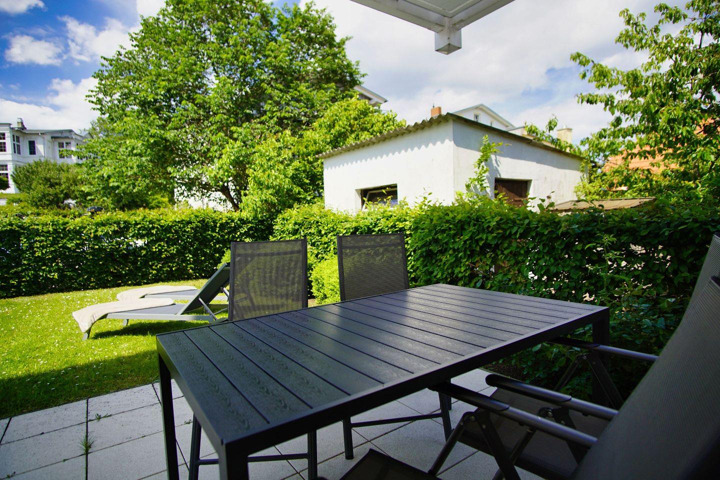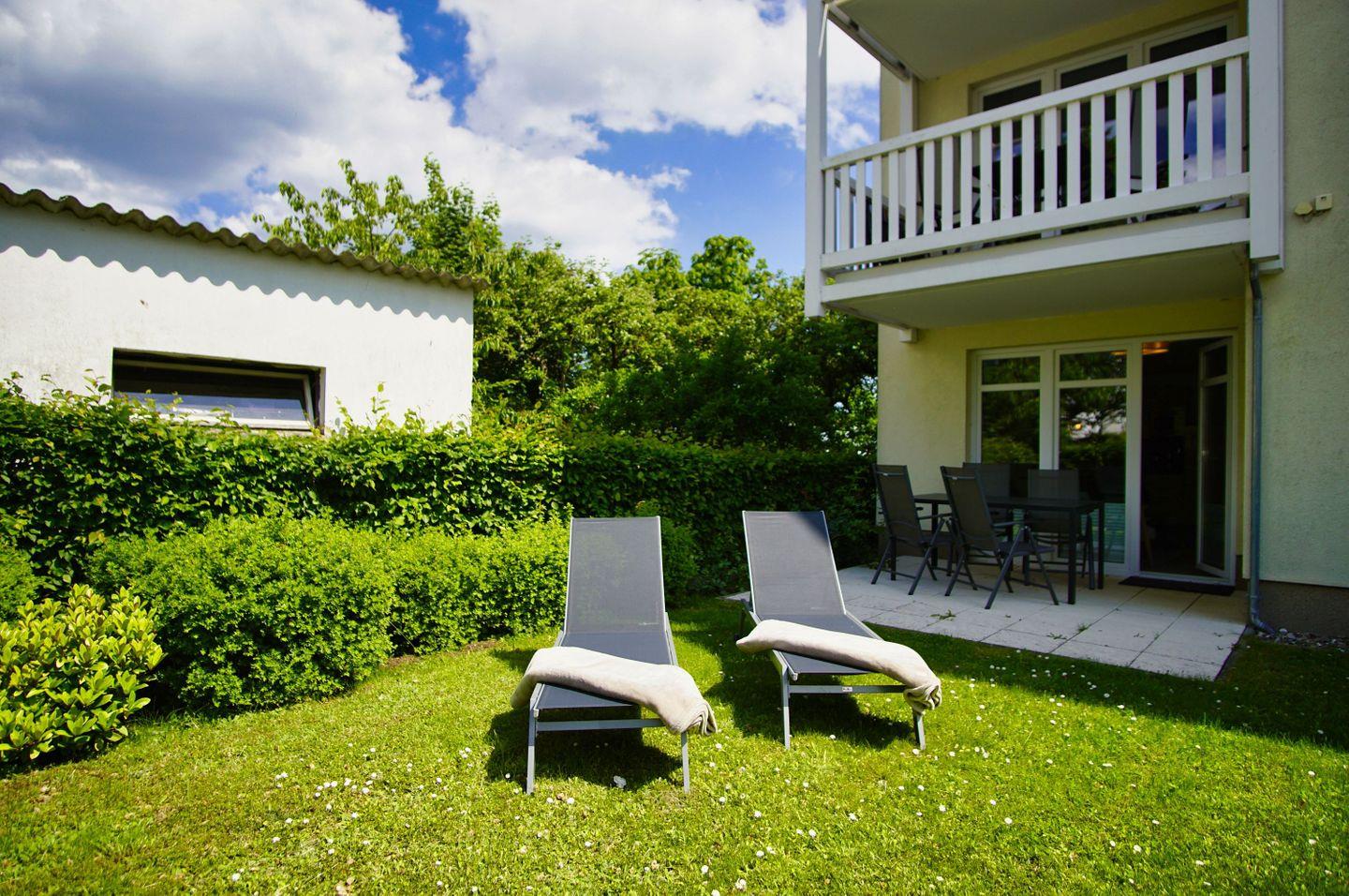 Die gepflegte, von großzügigen Rasenflächen eingefasste Anlage liegt in einer ruhigen Seitenstraße des Ostseebades Göhren.