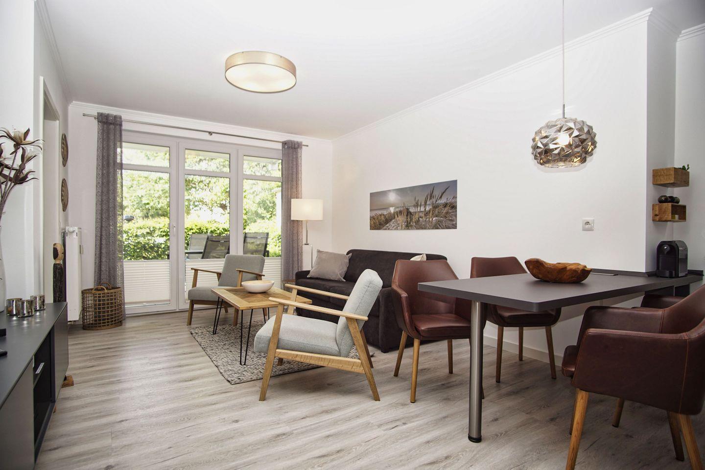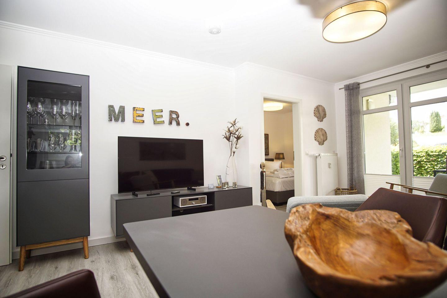 Genießen Sie Komfort und Meeresblick in dieser 2-Raum-Ferienwohnung in Göhren mit gratis Erlebnisbad- und Saunanutzung.