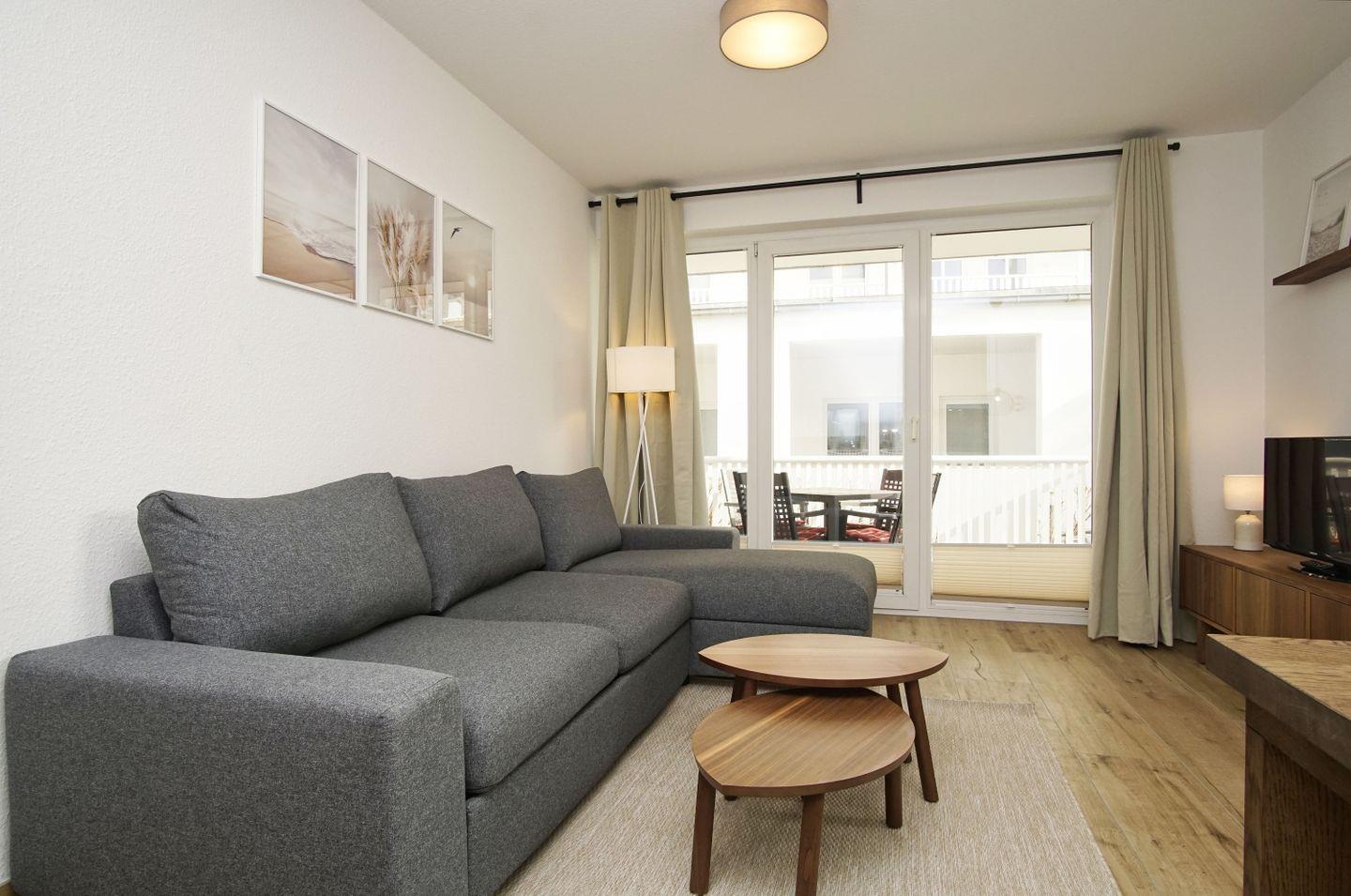 Gemütliche 2-Raum-Ferienwohnung in Göhren mit Terrasse und kostenfreiem Zugang zum AHOI Erlebnisbad und Sauna.