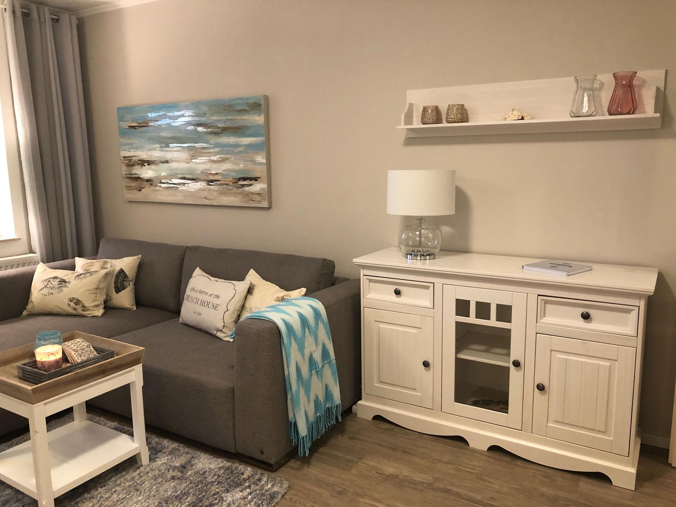 Ihre moderne und mit Liebe zum Detail eingerichtete 2-Raum-Nichtraucherwohnung 70RB25 Asta-Luise hat eine Größe von ca. 45 qm. Die Wohnung bietet ein hohes Wohlfühl-Ambiente und ist für eine Belegung mit max. 3 Personen ausgestattet. Bei der Einrichtung wurde viel Wert auf eine maritime Note in dezenten natürlichen Farben gelegt. Sie befindet sich im Hochparterre auf der Ostseeseite der Strandvilla Brandenburg. Ein kleiner Ostseeblick durch die Bäume sowie Wellenrauschen sind hier vom möblierten Balkon (18 qm) inklusive.