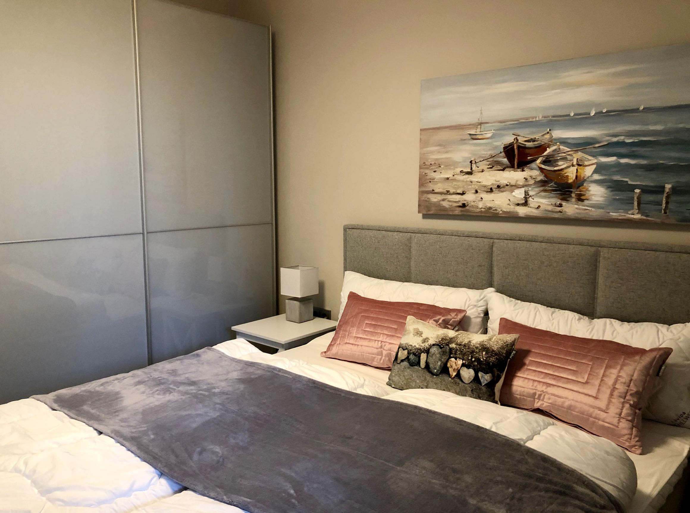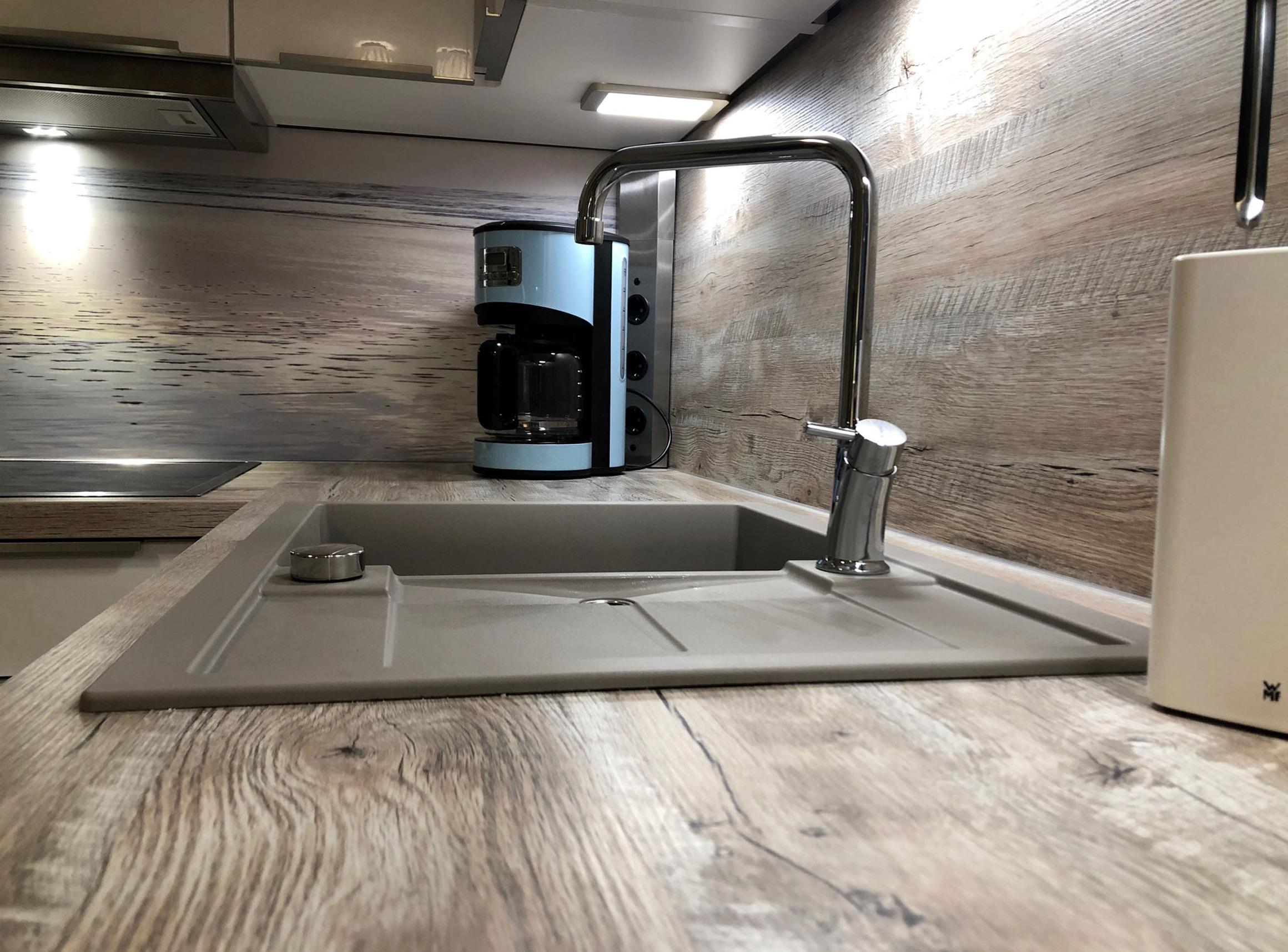 Die Wohnung wurde 2019 aufwendig saniert und hochwertig ausgestattet. Der Wohnbereich ist mit einem gemütlichen Winkelsofa mit bequemen Rückenkissen und Ausziehfunktion (Liegefläche: 160 x 200 cm) ausgestattet. Zudem erwartet Sie eine hochwertig ausgestattete Markenküche und ein großer Essplatz mit 4 Stühlen. Als Unterhaltungselektronik stehen ein Smart LED-Flachbildfernseher und kostenloses WLAN zur Verfügung. Das Bad verfügt über eine Dusche, WC, Waschtisch und Fön. Die in den Wohnbereich integrierte Küche ist modern mit Siemens-Elektrogeräten wie Induktionskochfeld, Backofen mit integrierter Mikrowelle, Kühlschrank mit Gefrierfach, Geschirrspülmaschine, Kaffeemaschine, Wasserkocher, Toaster und hochwertigem Messerset etc. ausgestattet. Das Schlafzimmer bietet, neben einem exklusiven Boxspringbett (H3) mit bequemen Einstieg (65 cm Höhe), höchsten Schlafkomfort, einen geräumigen Kleiderschrank, Smart-TV, Insektengitter, einen Ganzkörperspiegel sowie Verdunklungsstoffe.