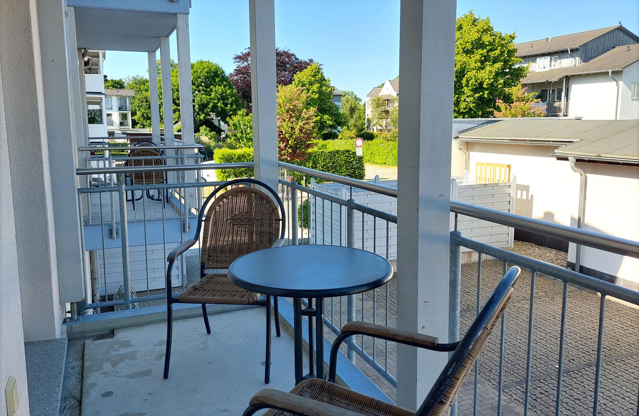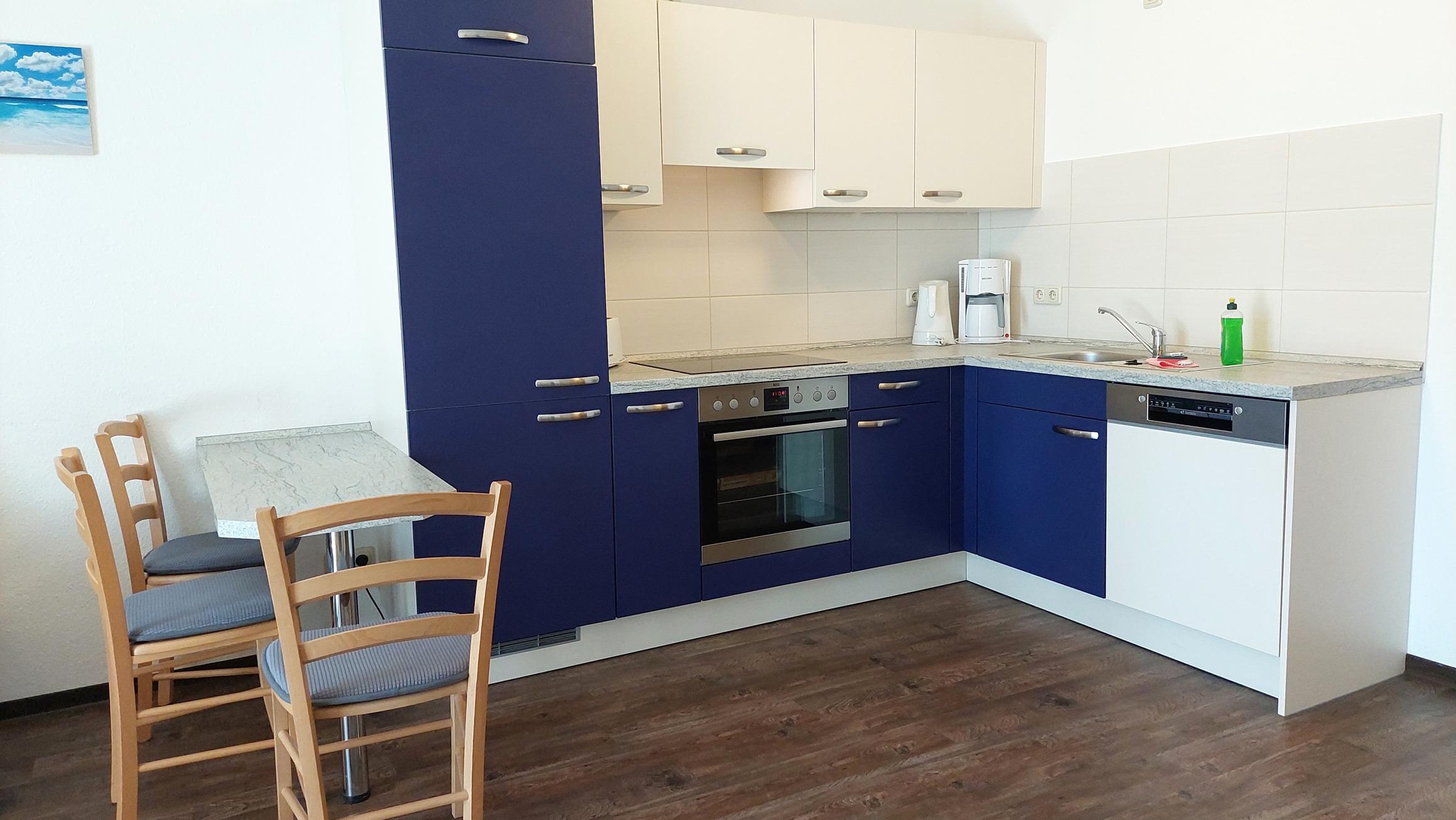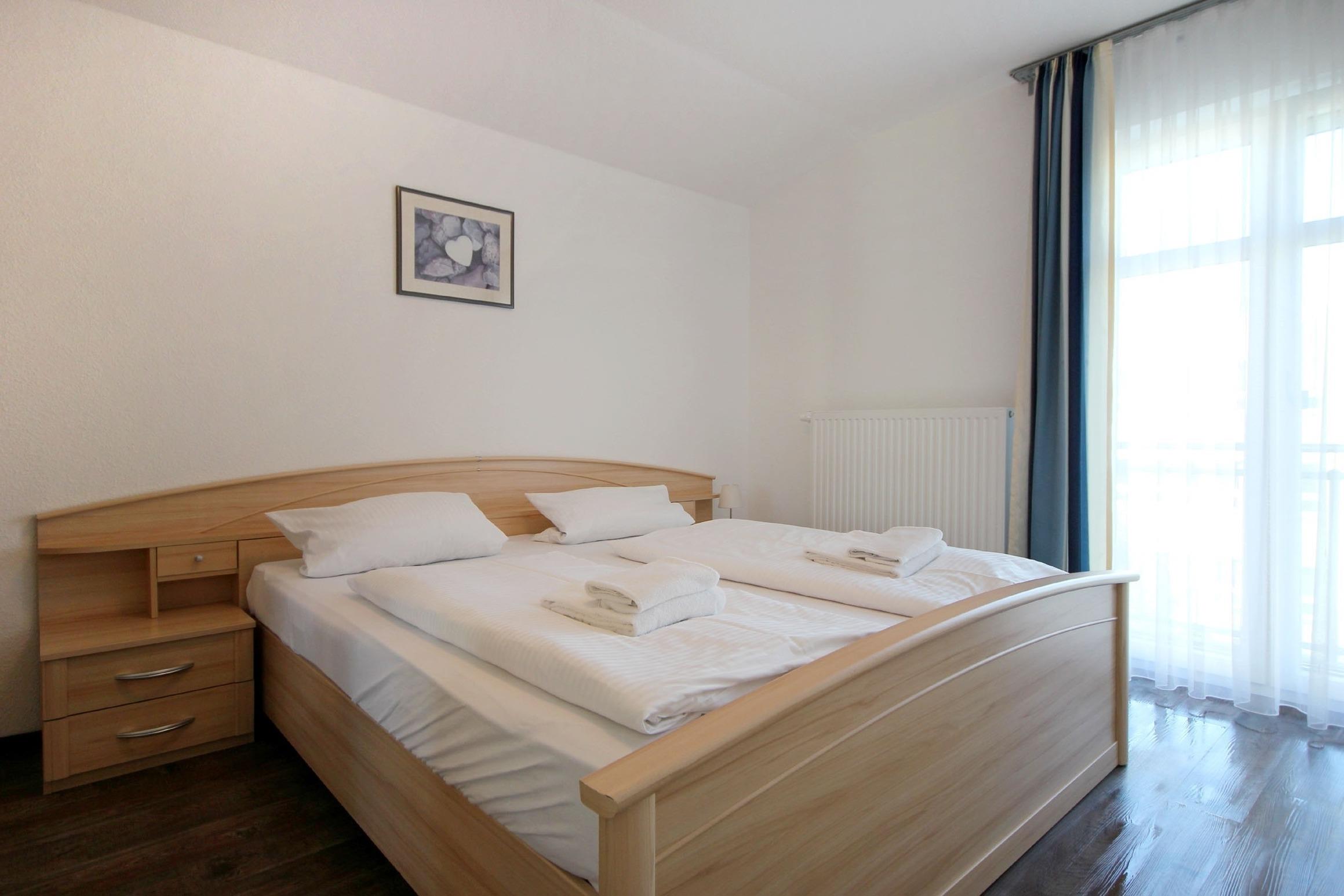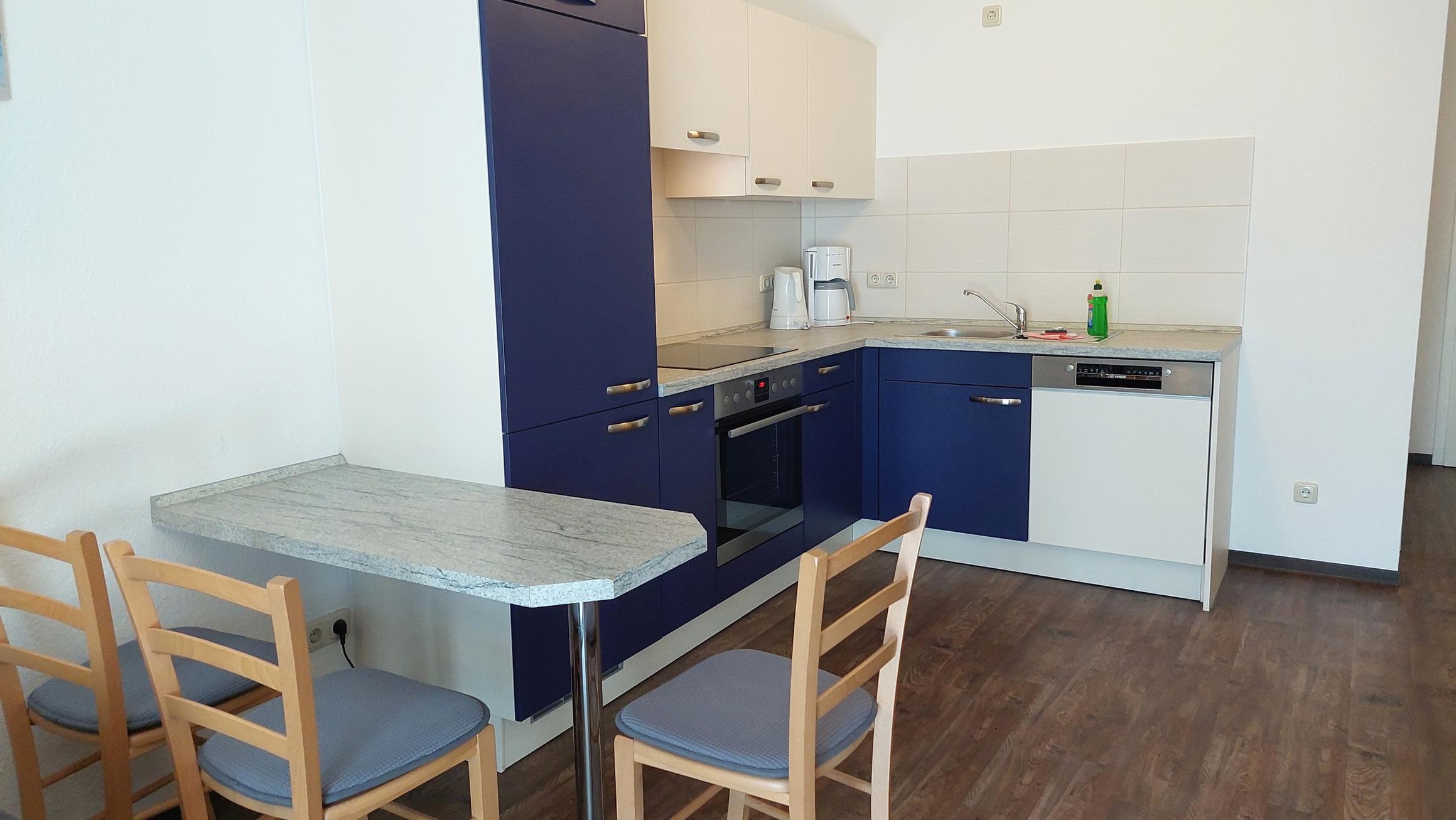 Diese freundliche Wohnung ist aufgeteilt in einen Wohnraum mit Balkon und integrierter Küchenzeile, ein Schlafzimmer ebenso mit Zugang zum Balkon und ein Duschbad mit Waschtisch und WC. Das Wohnzimmer begrüßt Sie mit einem Schlafsofa und Sessel sowie Flachbild-TV. Das Schlafzimmer verfügt über ein Doppelbett (1,80m x 2m) sowie einen Kleiderschrank. Die Küchenzeile ist mit Backofen, Geschirrspüler, Cerankochfeld, Kühlschrank mit kleinem Gefrierfach, Cerankochfeld, Mikrowelle, Kaffeemaschine, Wasserkocher und Toaster ausgestattet. Highlights: Kostenfreies WLAN sowie ein frei wählbarer PKW-Stellplatz direkt am Haus.