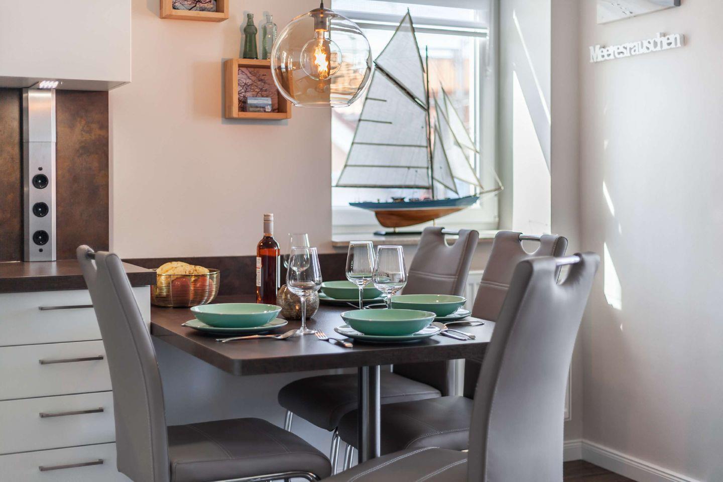KÜCHE // offene Küche, Induktionskochfeld, Spülmaschine, Kühlschrank mit 4-Sterne-Gefrierfach, Kombi-Mikrowelle, Cafissimo-Kapselmaschine und Milchaufschäumer, Kaffeemaschine, Toaster, Wasserkocher, reichlich Besteck sowie Geschirr und diverse Küchenutensilien ++