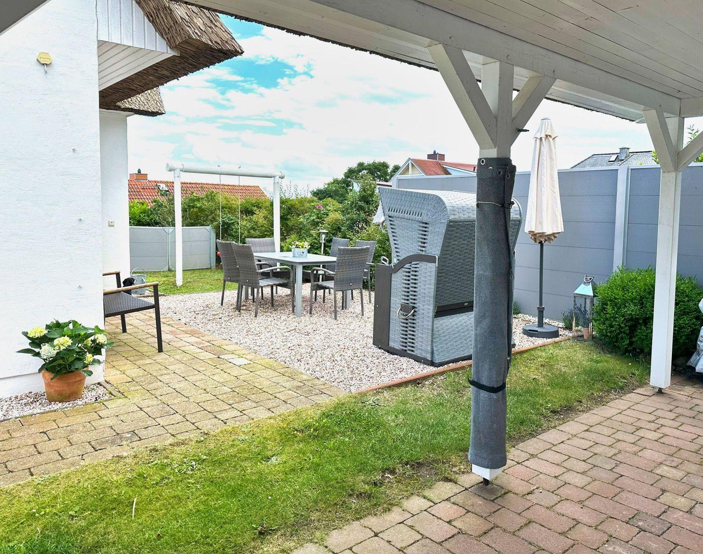 Modernes Reetdachhaus in Göhren mit Meerblick, Garten und komfortabler Ausstattung nahe dem Strand.