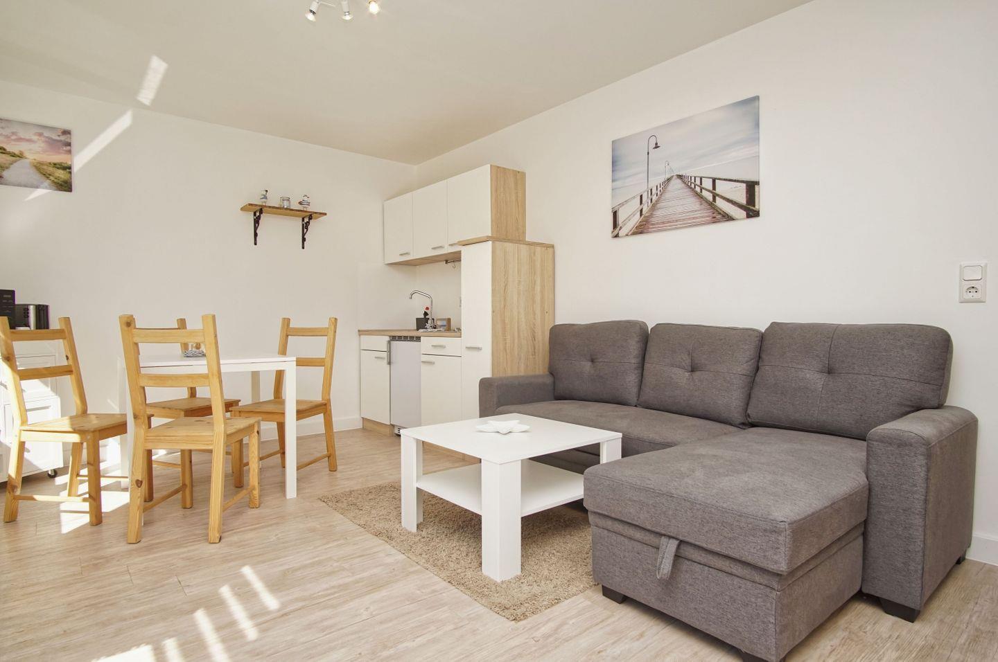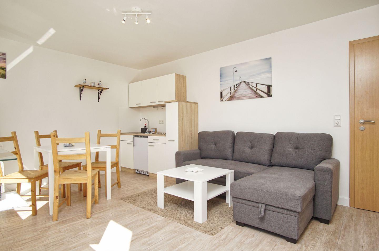 Die geräumige Ferienwohnung Buskam eignet sich mit ihren 50 m² hervorragend für bis zu drei Personen. Dank der ruhigen Lage und nur rund 900 Metern Entfernung zum feinsandigen Badestrand können Sie hier ganz in Ruhe abschalten und sind trotzdem in wenigen Minuten an der Ostsee.