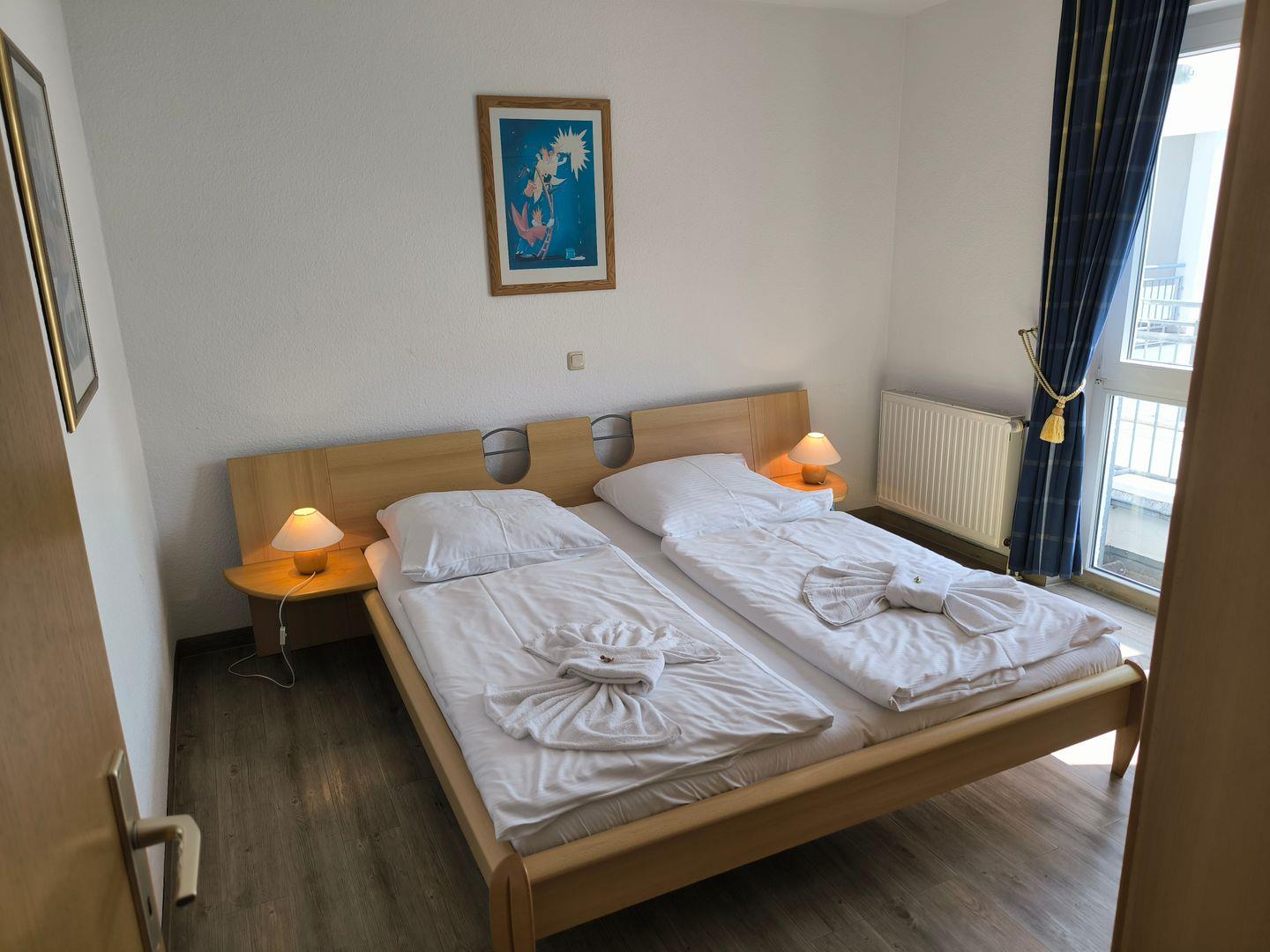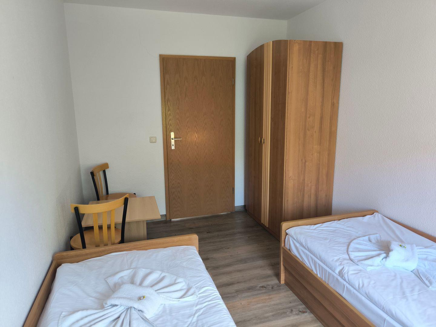 Schlafzimmer mit 2 Einzelbetten (90 x 200 cm ), großem Kleiderschrank, Tisch und Stühlen