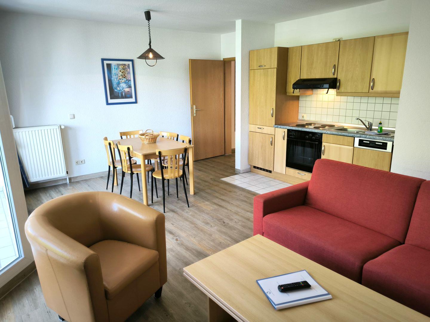 Moderne 3-Raum-Wohnung in Göhren mit Balkon, Küche, TV und nahe am Strand für erholsamen Urlaub.