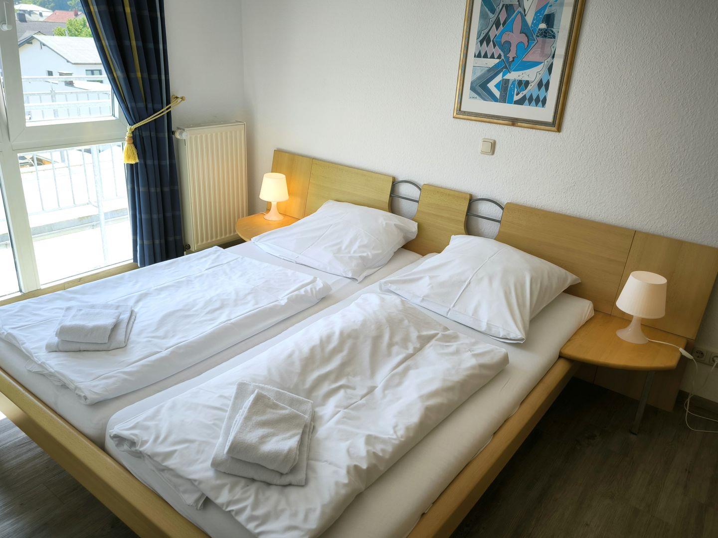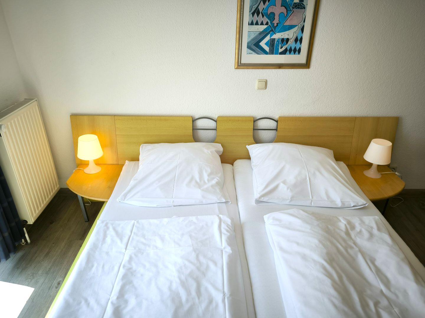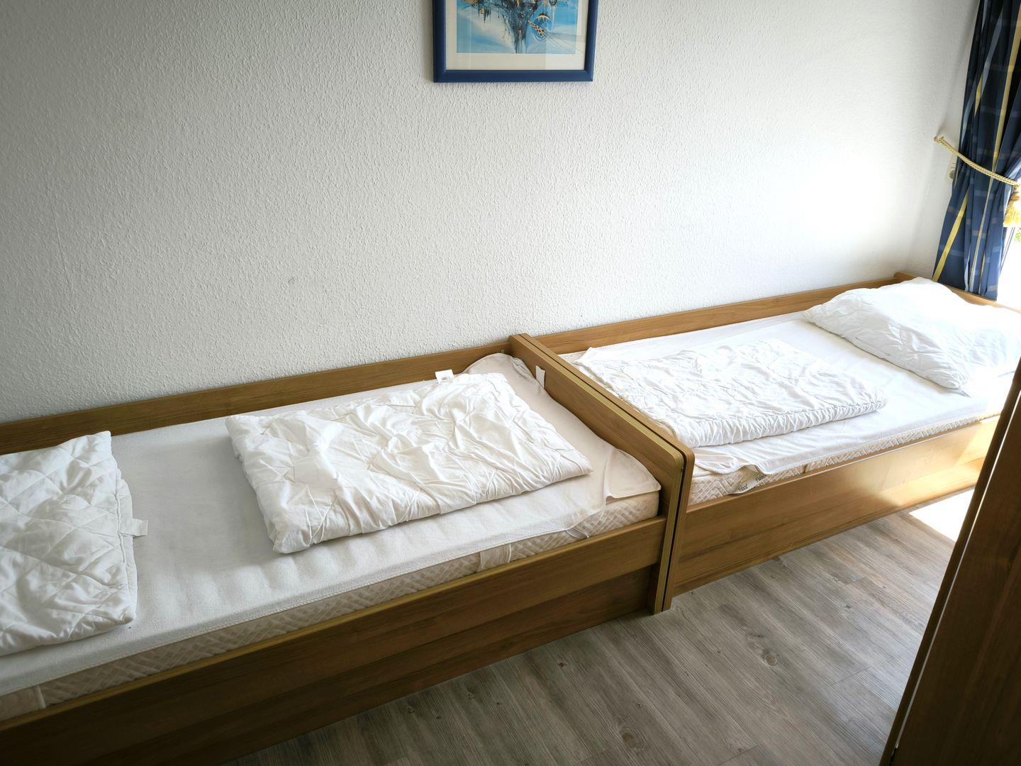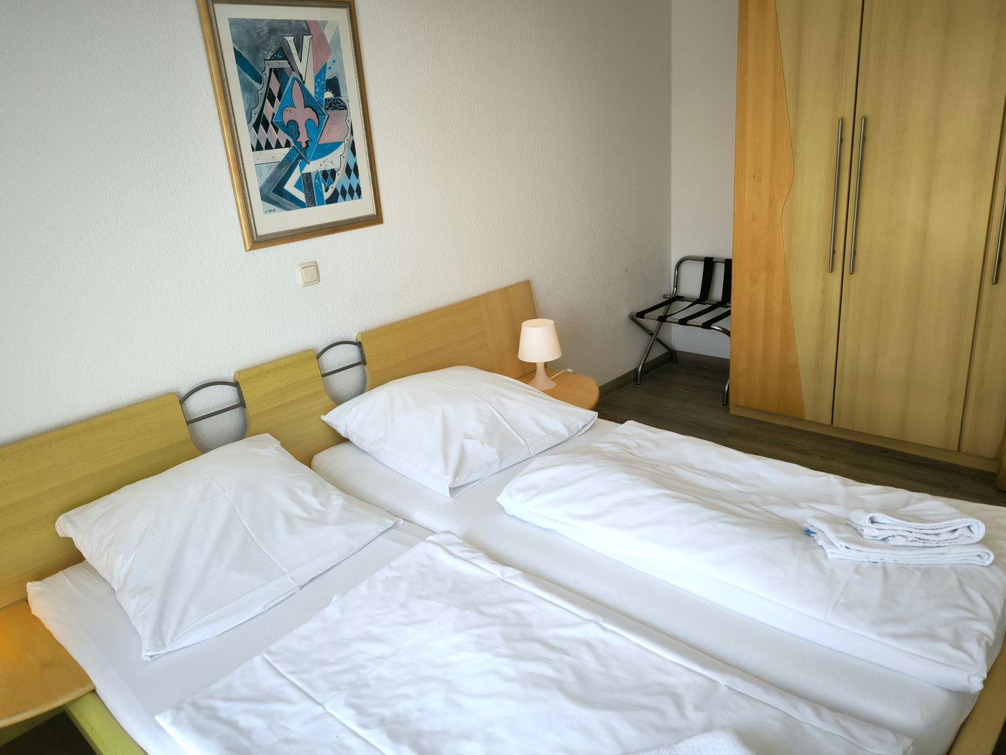 Schlafzimmer mit 2 Einzelbetten (90 x 200 cm ), großem Kleiderschrank, Tisch und Stühlen