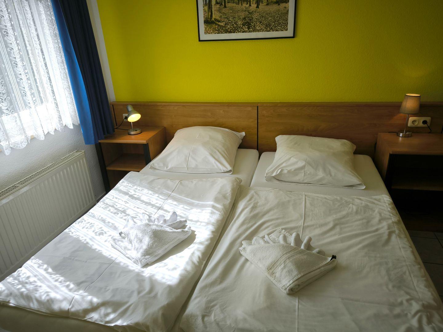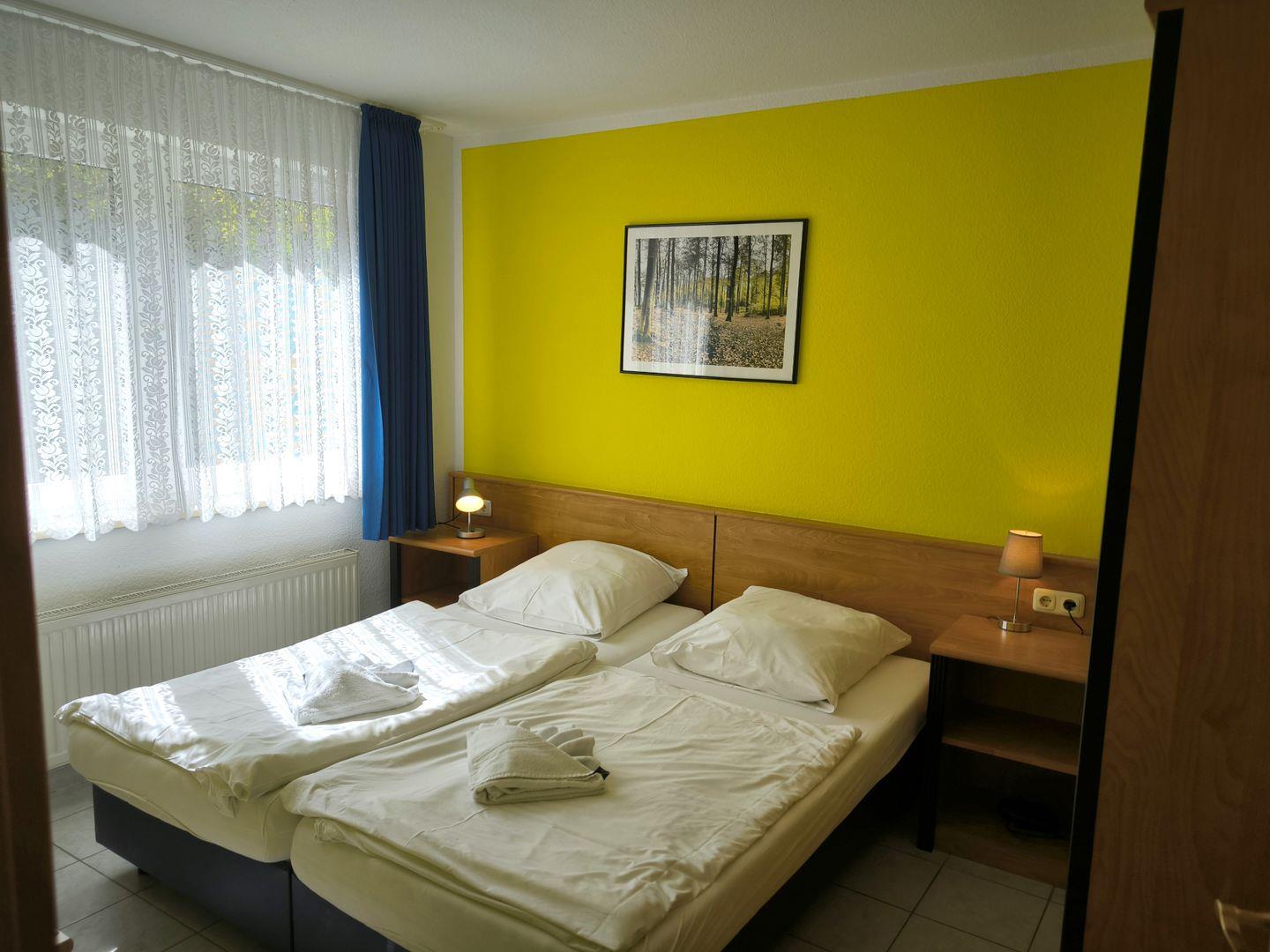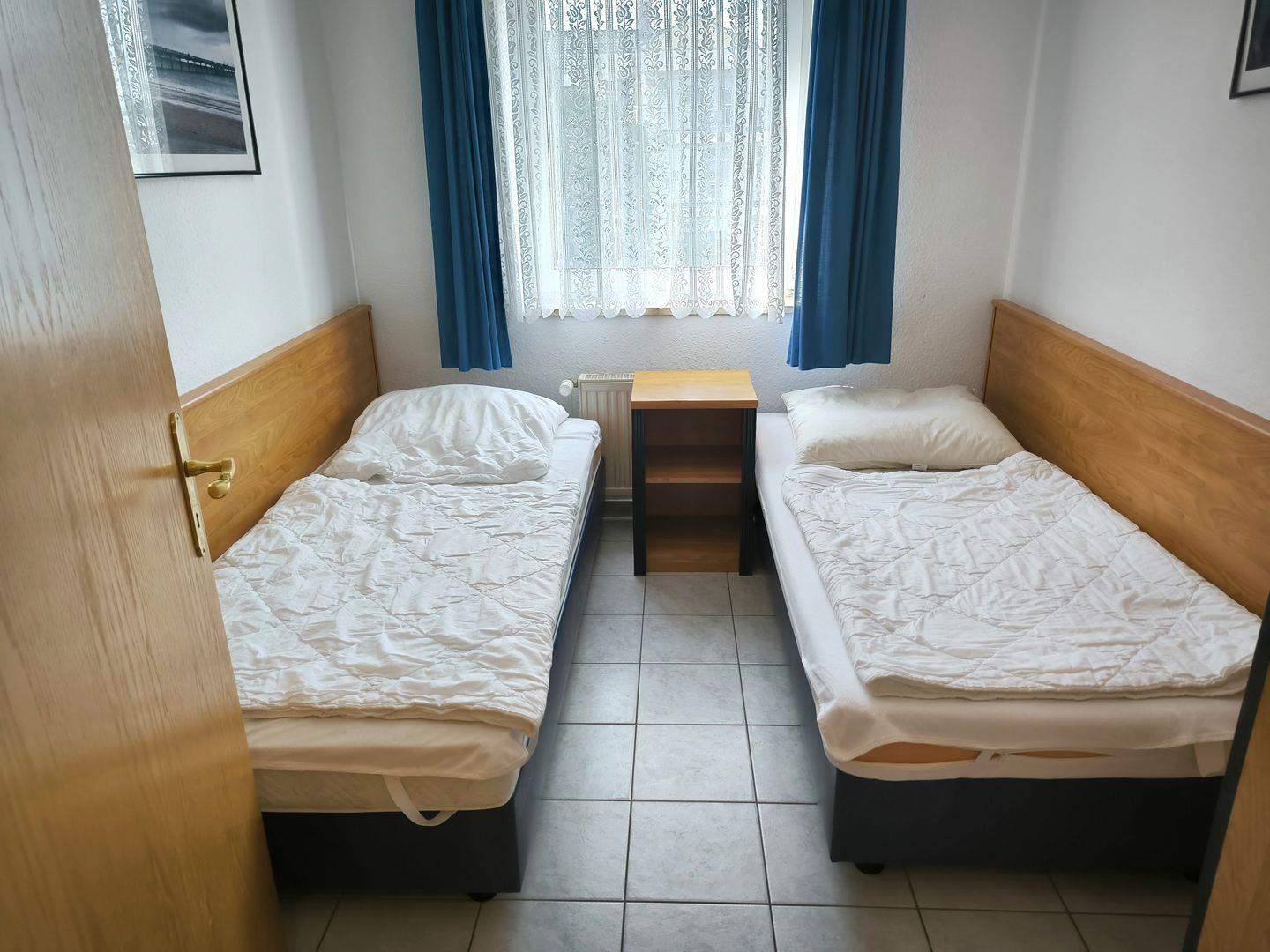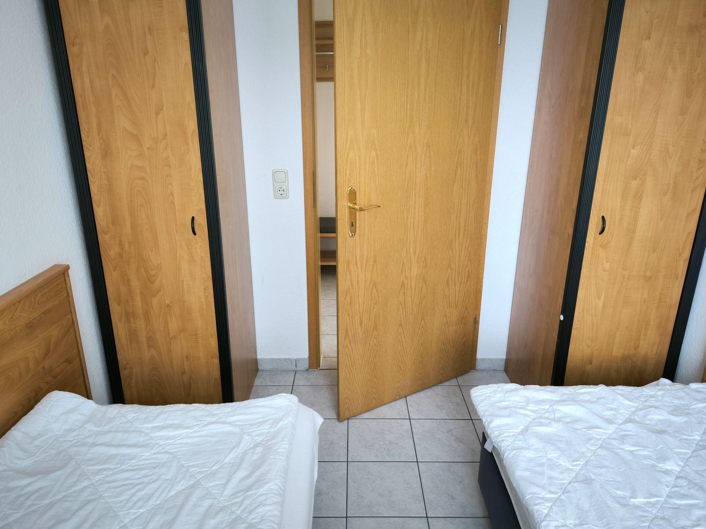 2. Schlafzimmer mit 2 getrennt stehenden Betten und kleinem Kleiderschrank