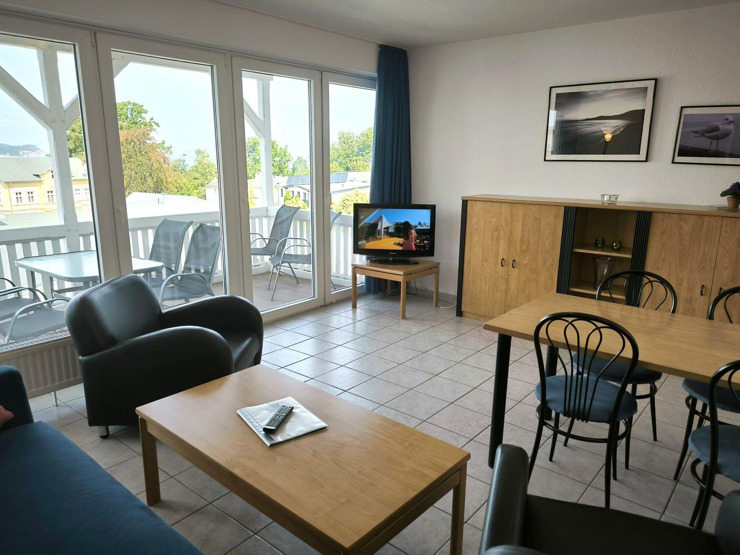 Modernes 3-Zimmer-Apartment mit Balkon und Meerblick in Göhren, ideal für Familien und Strandliebhaber.