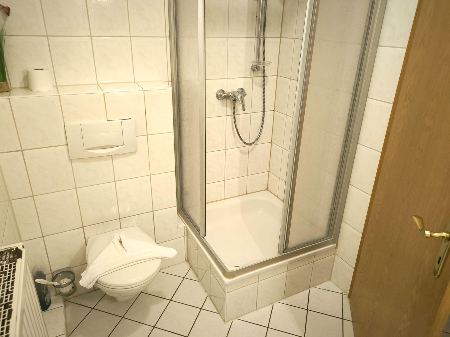 Bad mit Dusche, WC und Föhn