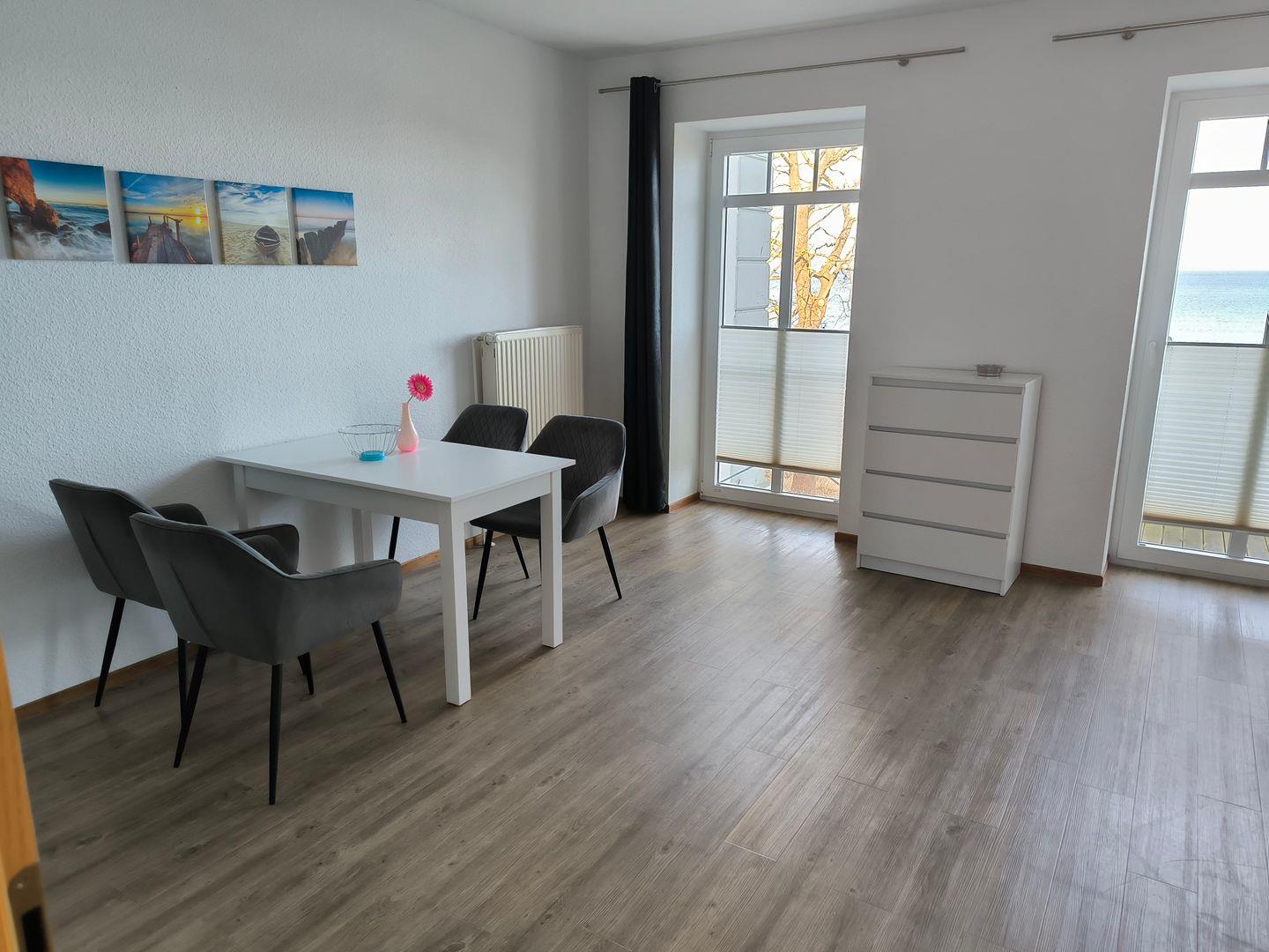 Moderne 2-Raum-Wohnung mit direktem Meerblick, nur 50 m vom Strand in Göhren entfernt.
