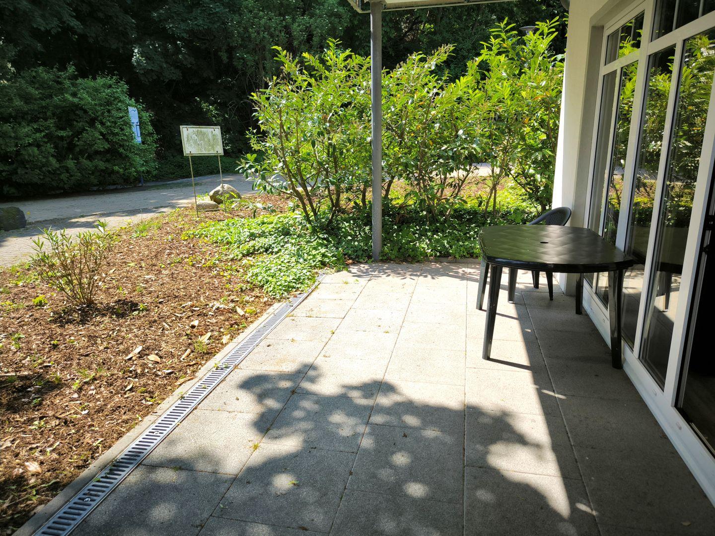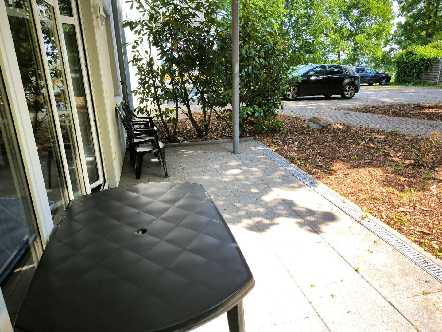 Die Ferienwohnung ist freundlich eingerichtet und hat eine Terrasse.