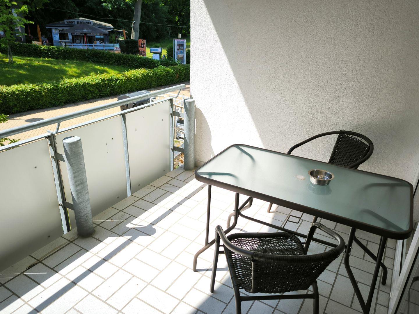Moderne 1-Zimmer-Ferienwohnung mit Balkon und Strandnähe in Göhren, ideal für Paare und Urlauber mit Hund.