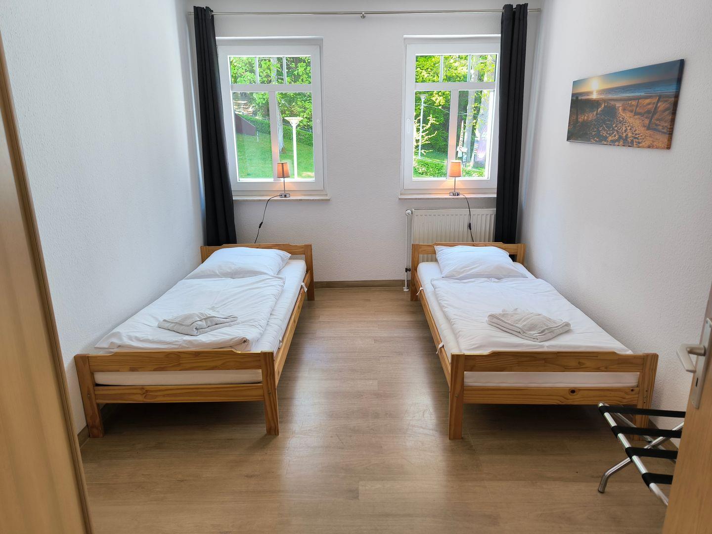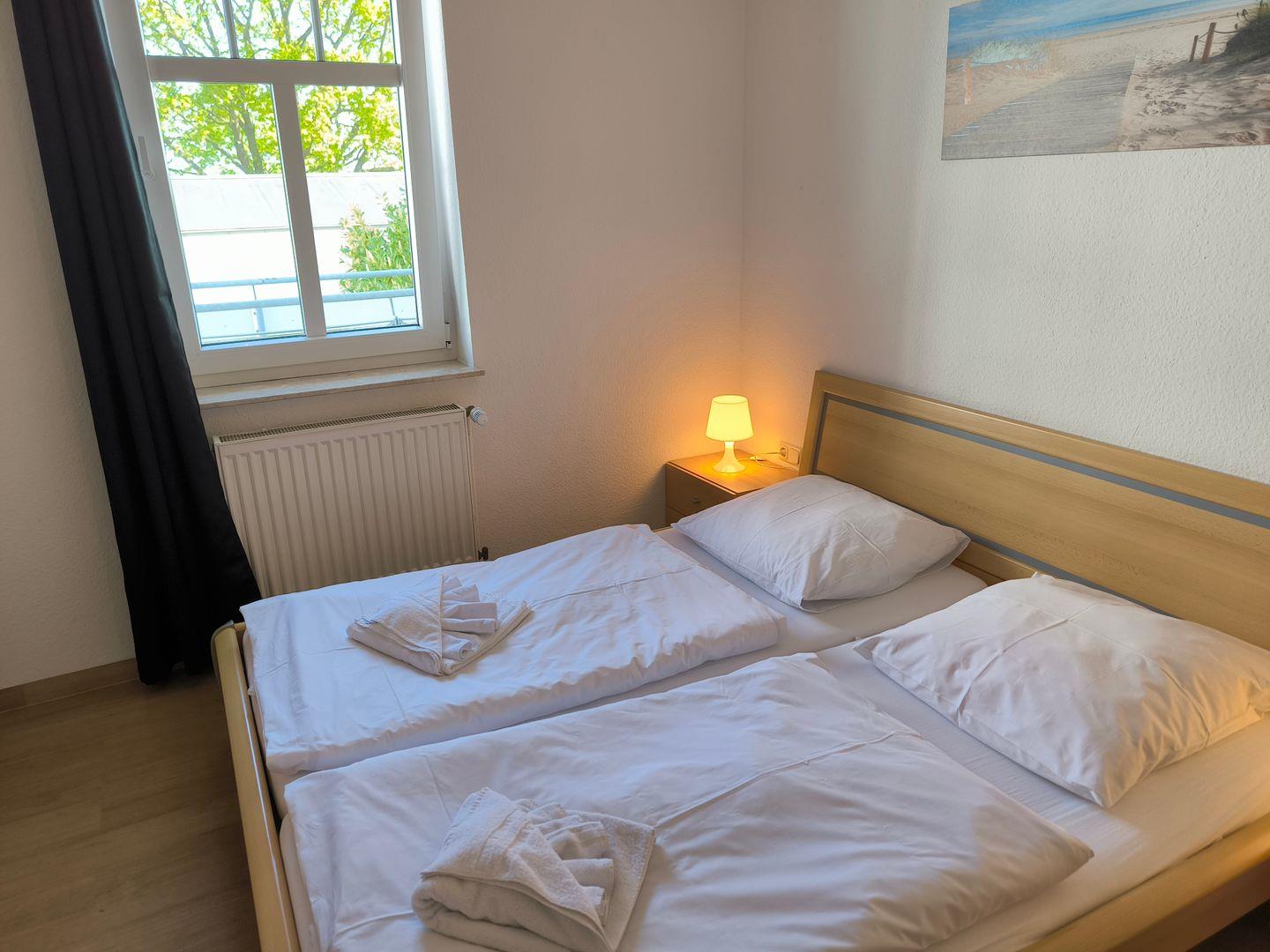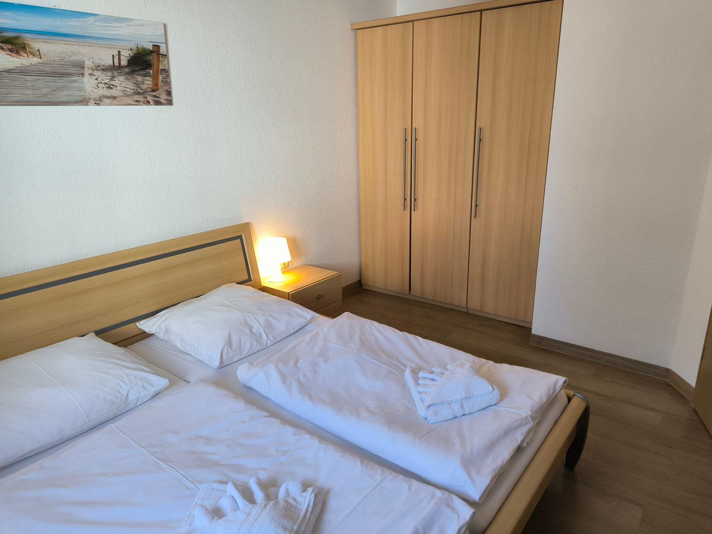 Schlafzimmer mit 2 getrennt stehenden Betten (90x200cm) und kleinem Kleiderschrank