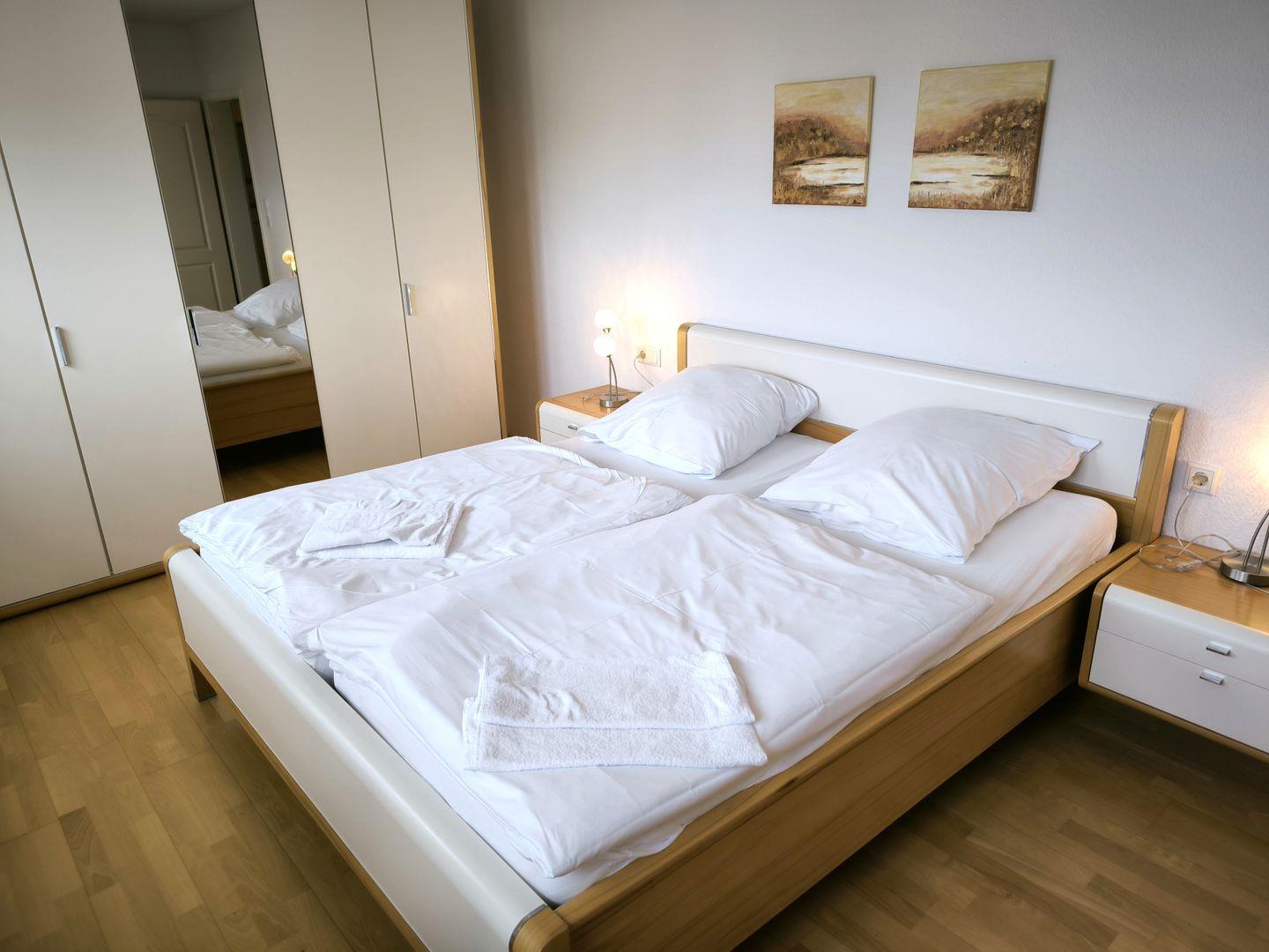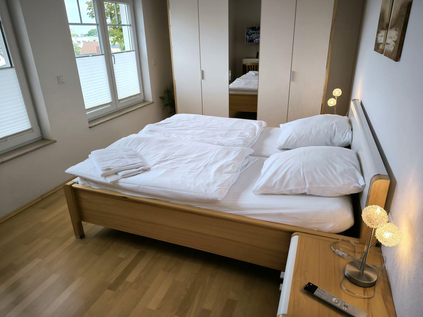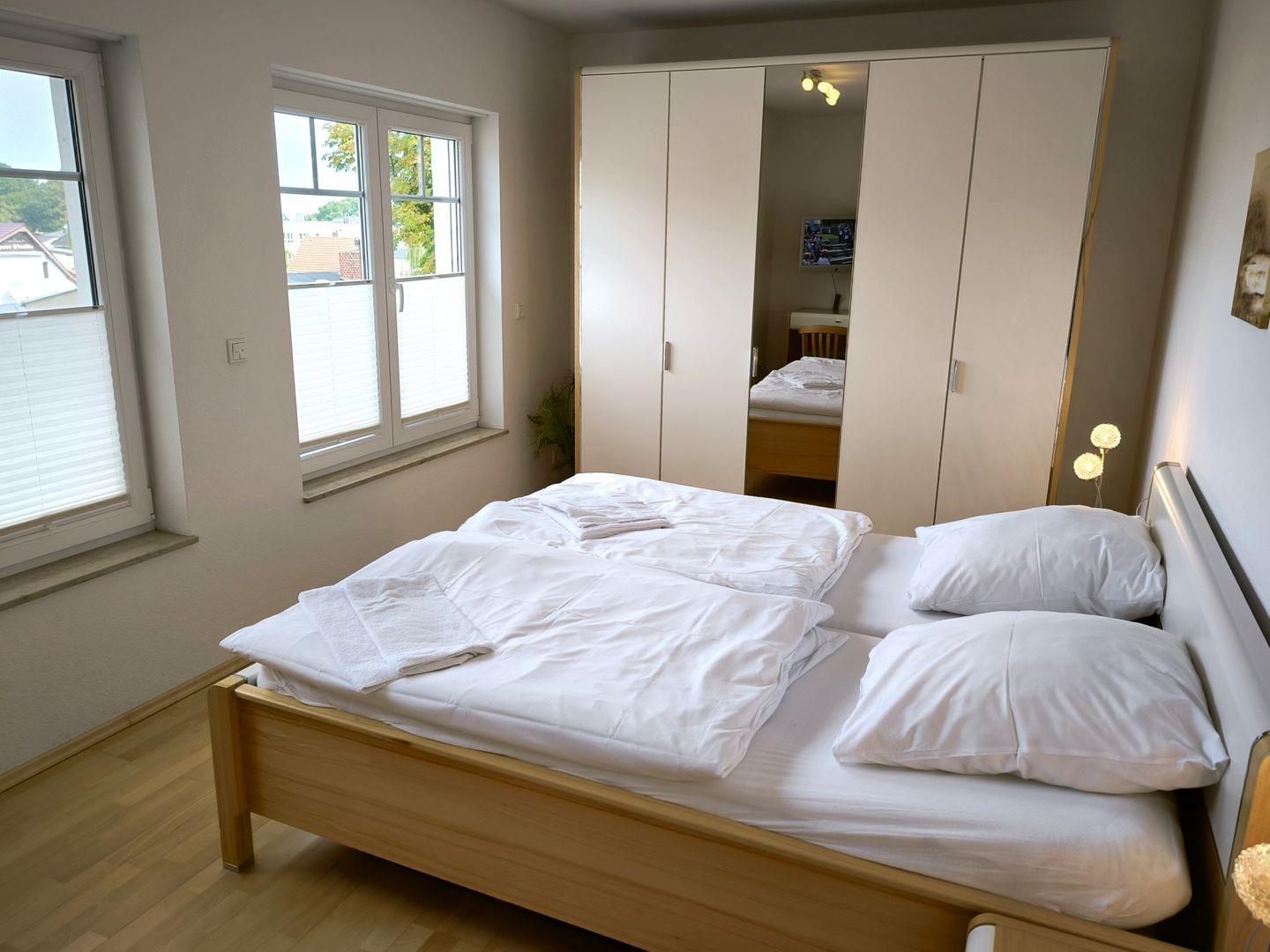 2 Schlafzimmer mit je einem Doppelbett (180 x 200 cm) und Doppelbett ( 160 x 200 cm ) und großem Kleiderschrank