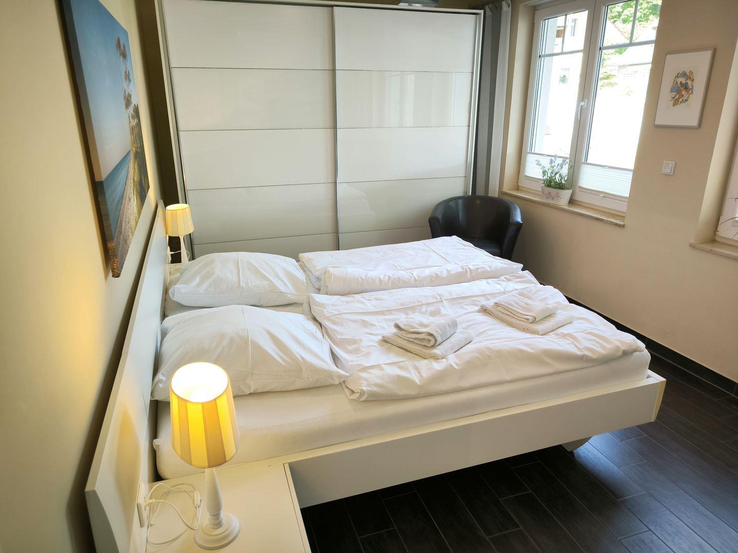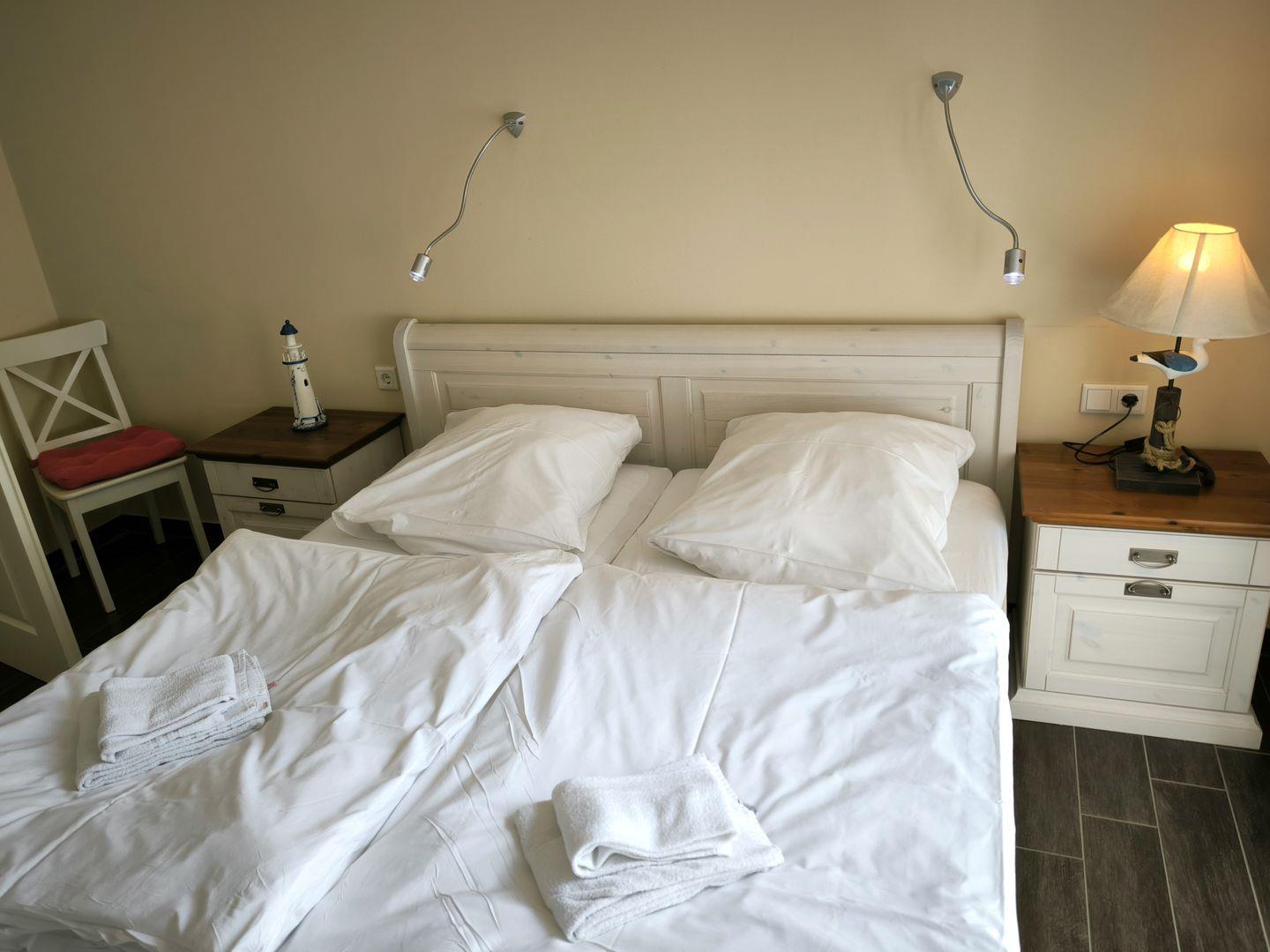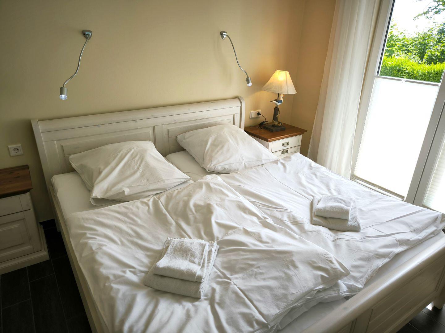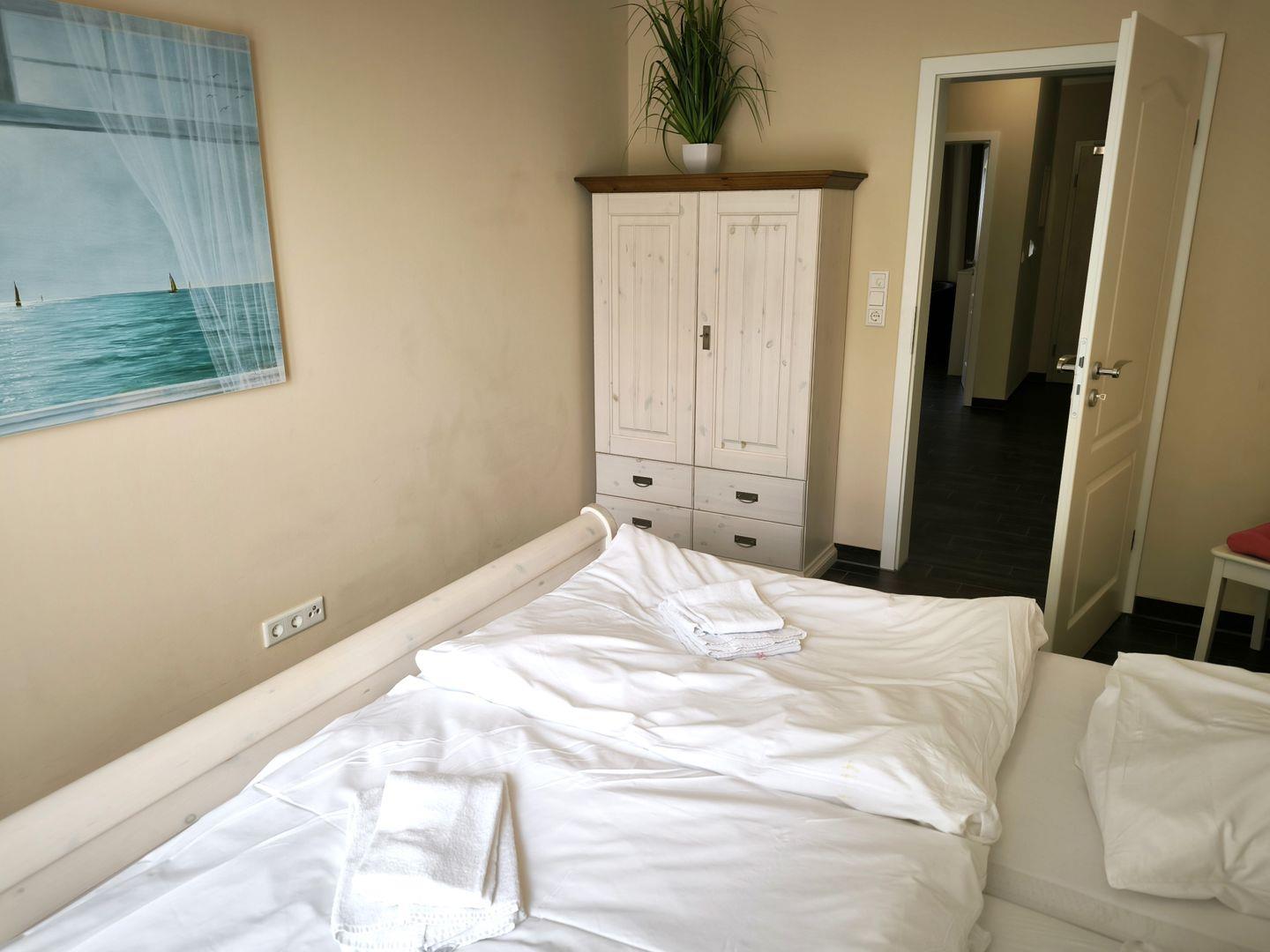 2 Schlafzimmer mit je einem Doppelbett (180 x 200 cm) und großem Kleiderschrank, davon ein Schlafzimmer mit Flat-TV