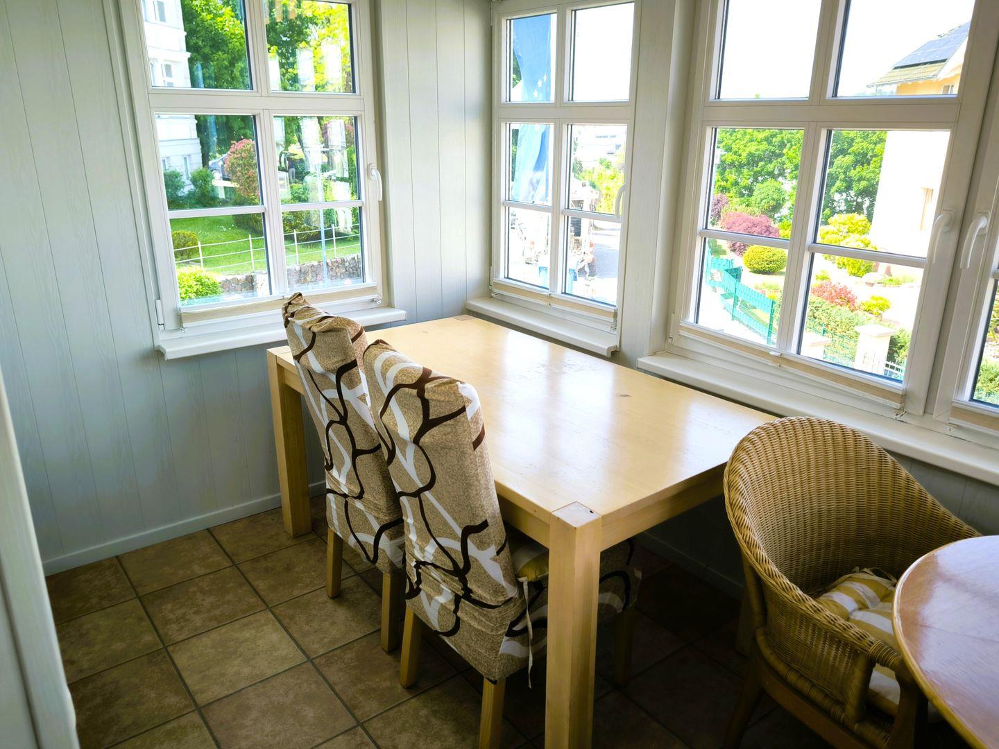 verglaste Veranda mit Esstisch und 4 Stühlen