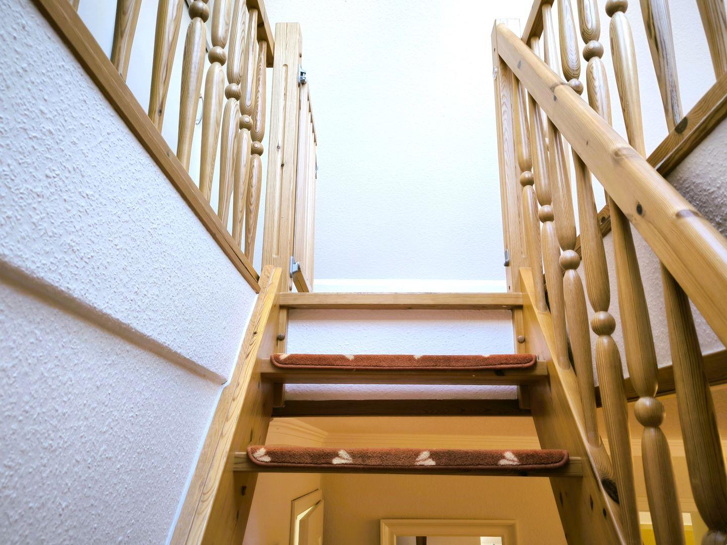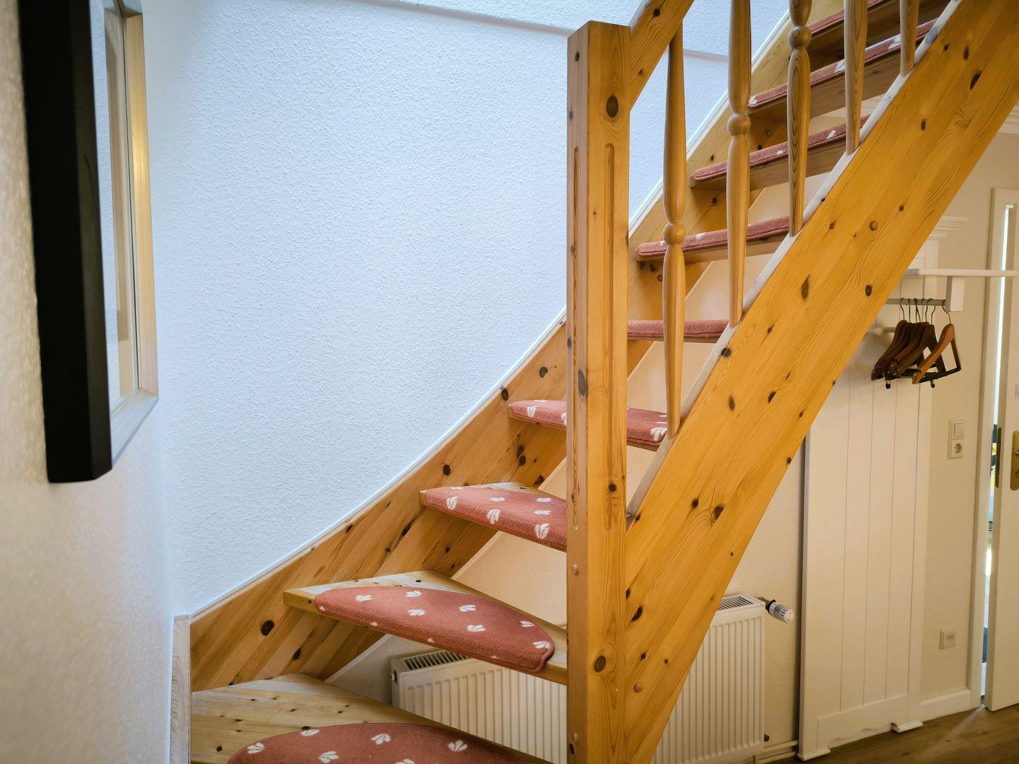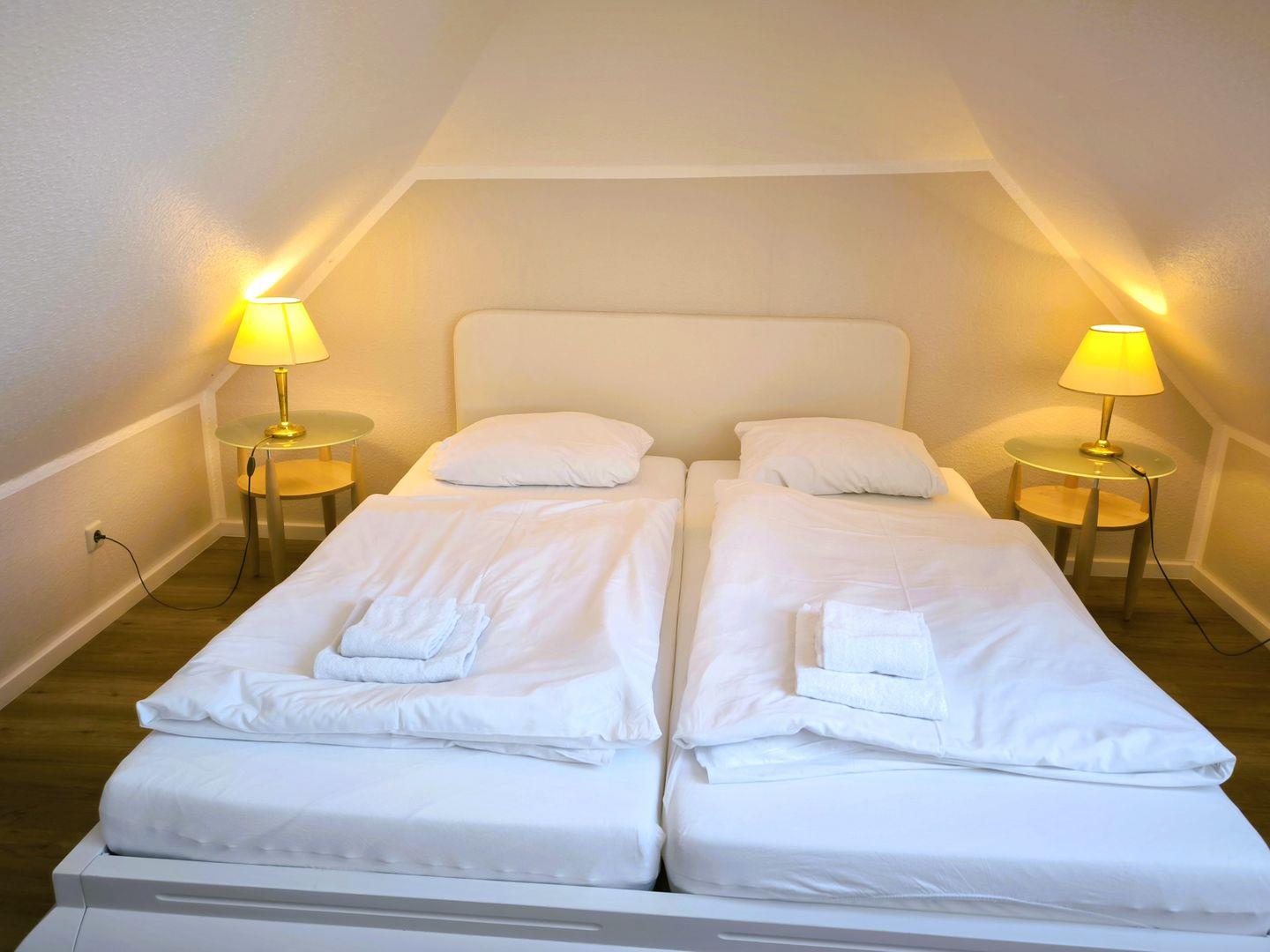 Schlafzimmer ( über eine Treppe erreichbar ) mit einem Doppelbett (180 x 200 cm), großem Kleiderschrank