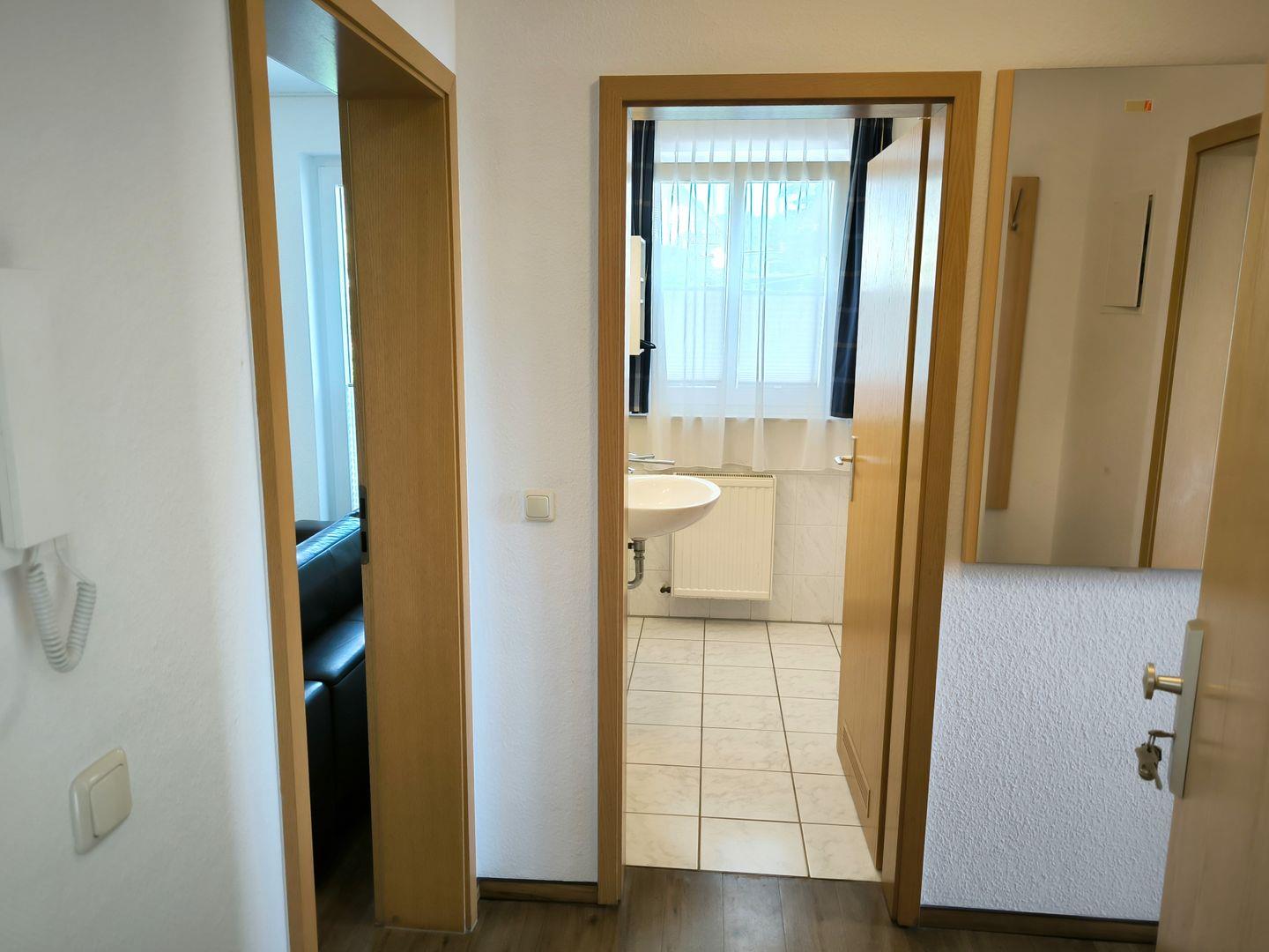 Bad mit Dusche, WC und Föhn